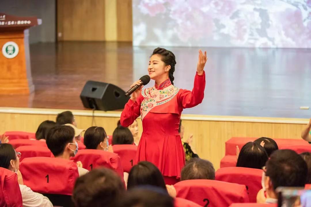 华大在线讯(记者 王丽婧 洪臻祎 见习记者 曾楚航)9月25日,首期“艺美桂苑大讲坛”在音乐厅开讲。山西原生态民歌传承人张红丽应邀担任主讲演唱艺术家。作曲家、指挥家甘霖,湖北民歌艺术家蒋桂英,特邀客席嘉宾杨志君也走上舞台,带领同学们领略民歌之美。校长郝芳华,副校长夏立新、彭双阶以及湖北省教育厅体卫艺处主要负责人出席。