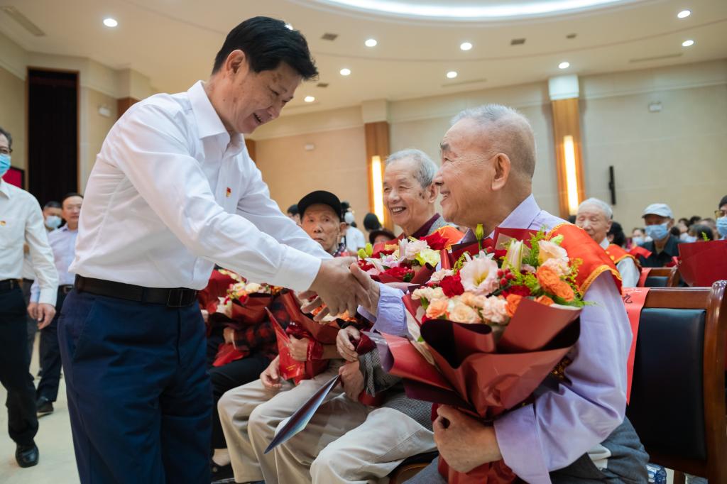 寿星代表、化学学院退休教授汪焱刚1959年来到环球(中国),是学校翻天覆地变化中的亲历者与见证人。“我想趁着身体和精神比较好的时候,对学校、学院做一些有益的工作。”汪焱刚老师动情地说。怀着这样的信念,他在退休生活里坚持老有所为,笔耕不辍。他充分肯定了学校在老同志工作方面的创新举措,希望老同志们老来康泰、老有所为。