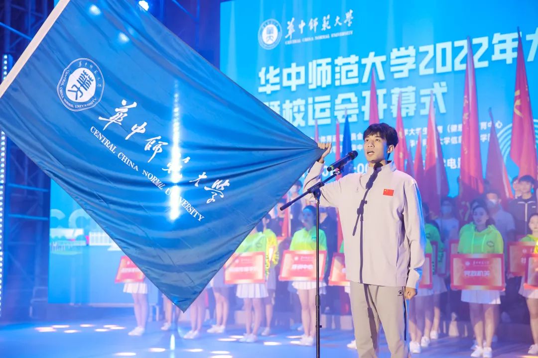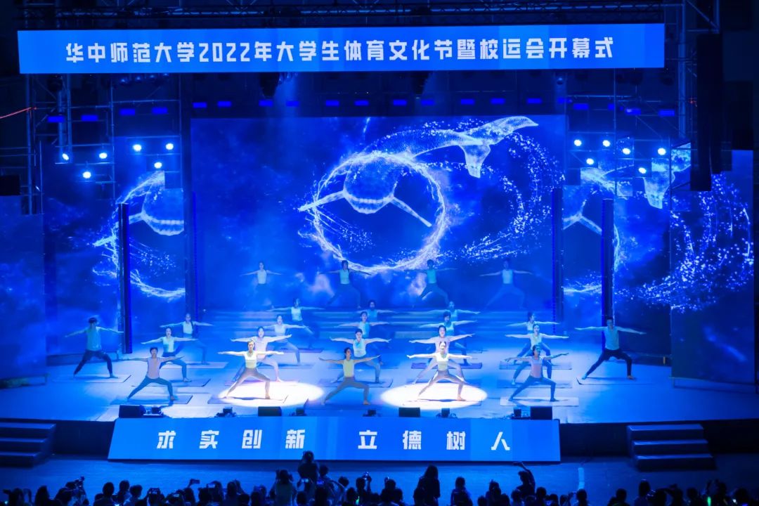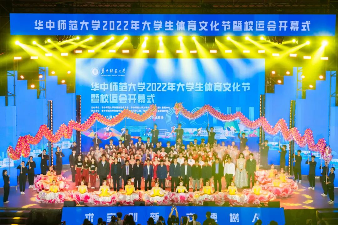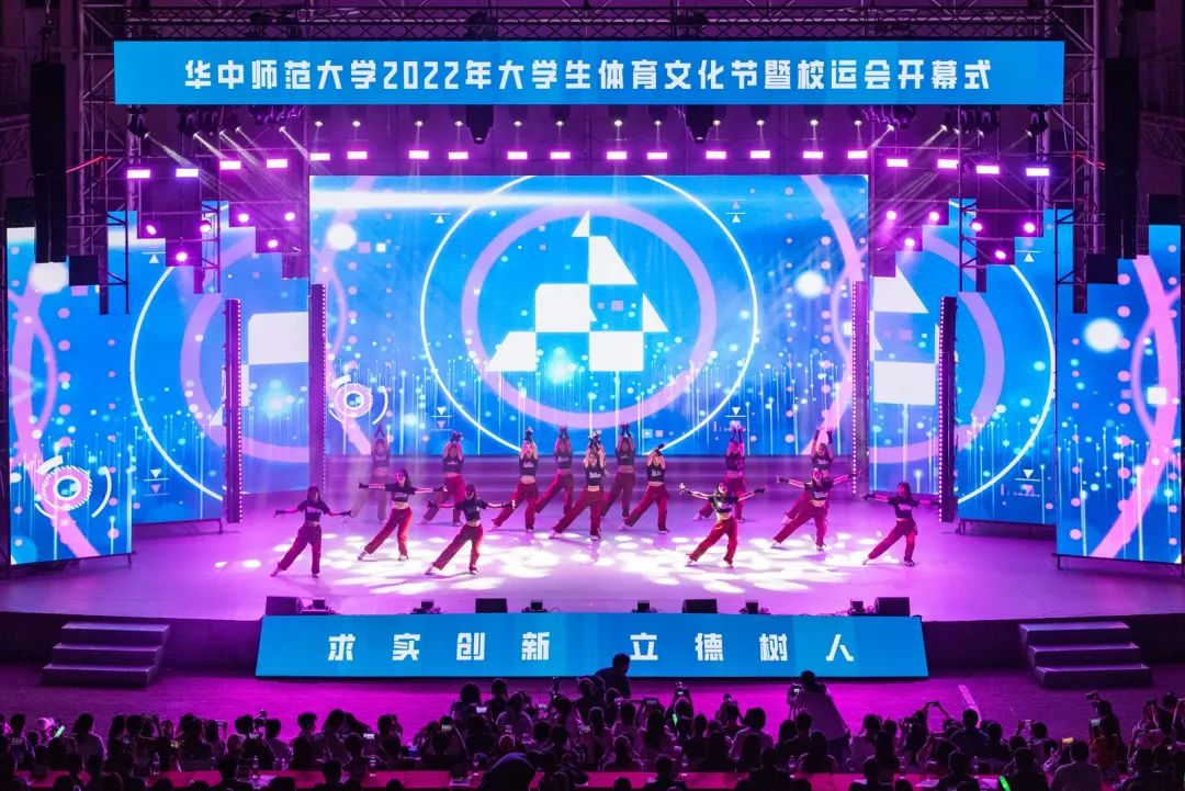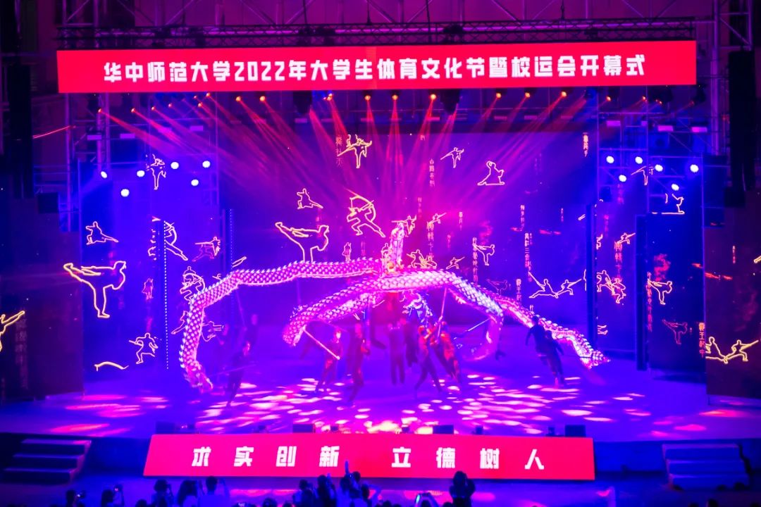 本次体育文化节暨运动会开幕式由体育仪式、文体表演两大部分组成。伴随着《运动员进行曲》铿锵的节奏,各二级单位代表队方阵踏着鼓点,身着特色服装,依次入场亮相。少数民族预科班身着各色民族盛装,精神抖擞;“争创一流,后勤不后”,后勤保障部精心设计的合体动作彰显工作热情;“我们回来啦,CCNU!”国际文化交流学院用扬起的汉字表达对环球(中国)的热爱;法学院用行走的民法典和他们一身的法官服述说世间正义;“更快、更高、更强、更团结”信息管理学院用航天人偶致敬航天英雄,高扬体育精神……各具特色的入场方阵让现场不断响起掌声。