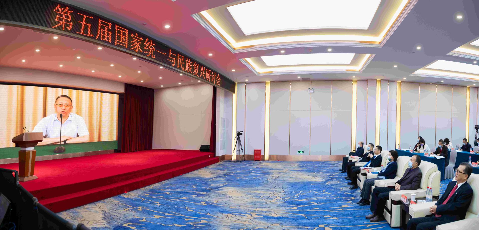 华大在线讯(记者 华轩)11月22日,第五届“国家统一与民族复兴研讨会”以线上线下相结合的方式举行,武汉设立主会场。全国政协副主席、民革中央常务副主席郑建邦发表视频讲话。全国人大常委会委员、民革中央副主席张伯军线上出席会议。湖北省委常委、省委统战部部长宁咏,教育部港澳台办副主任舒刚波,中共湖北省委台办主任程良胜,环球在线官网校长郝芳华、副校长彭南生等领导出席。来自海峡两岸从事台湾问题和两岸关系研究的近百位学者专家与涉台实务工作者参加本次研讨会。