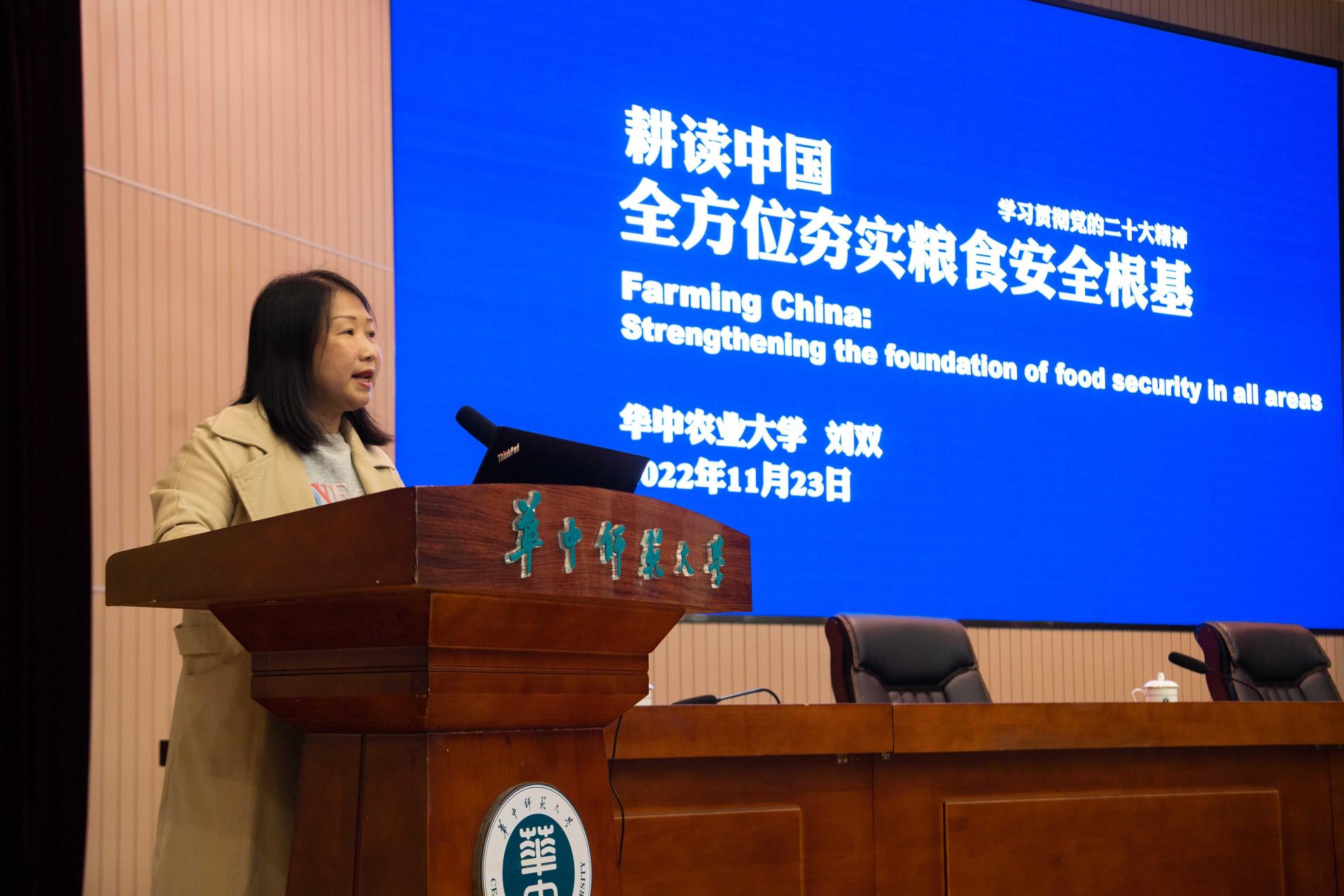 会上,党的二十大代表、长阳县花坪小学副校长刘发英,华中农业大学马克思主义学院副教授刘双,武汉大学水利水电学院2022级水工结构工程专业博士生唐嘉博,环球在线官网优秀学生宣讲小分队,为与会代表展示了宣讲内容。