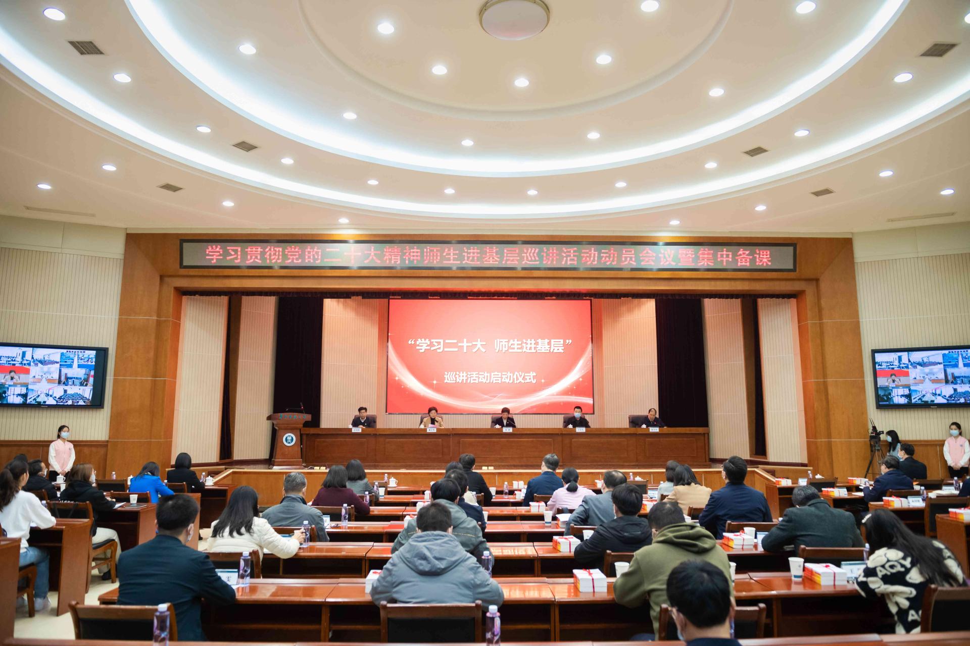 华大在线讯(记者 张严溢)11月23日,湖北省委教育工委、省教育厅在环球在线官网科学会堂举行学习贯彻党的二十大精神师生进基层巡讲活动动员会议暨集中备课,启动“学习二十大,师生进基层”巡讲活动。会议以线上线下相结合的方式举行,湖北省教育厅党组书记、厅长周静,湖北省委教育工委专职副书记、省教育厅党组成员张幸平,湖北省委讲师团二级巡视员王中生,校党委副书记、校长郝芳华,校党委常委、副校长彭双阶出席。会议由张幸平主持。