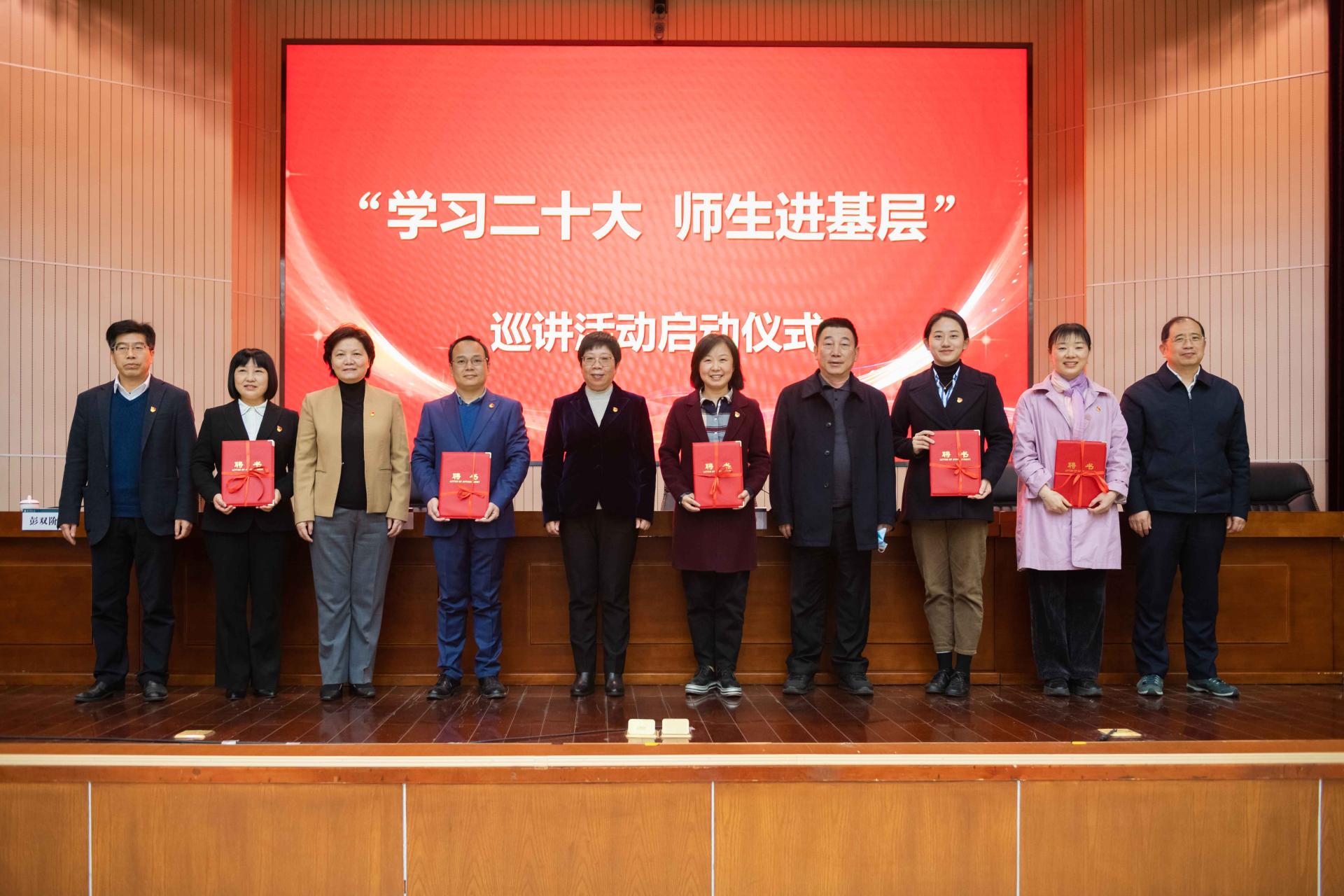 郝芳华在致辞中表示,党的二十大是党和国家事业的行动指南,是教育高质量发展的行动指南。学校党委高度重视党的二十大精神的学习宣传贯彻工作,通过校院两级党委理论学习中心组学习、邀请党的二十大代表进校园、组建“理响环球(中国)”理论宣讲团、构建“1+38”校院一团多队宣讲体系等系列举措,全覆盖地开展二十大精神校园巡讲。学校将积极参与学习贯彻党的二十大精神师生进基层巡讲活动,推动习近平新时代中国特色社会主义思想和党的二十大精神深入人心,促进学校发展。
