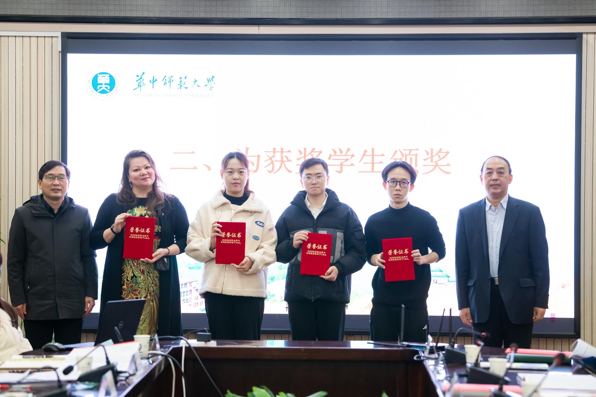 华大在线讯(通讯员 易吉林 罗少琦)11月29日,2022年度“周洪宇华大卓越人才奖”颁奖仪式在行政楼一楼会议室举行。十三届全国人大常委会委员、全国人大代表、湖北省人大常委会副主任周洪宇教授,校党委书记赵凌云,副校长任友洲出席颁奖仪式,谌仁俊、罗金红、吴河江、沙蒙、李晨祺、KARACHEVA NADEZHDA等获奖师生以及相关职能部门负责人参加。