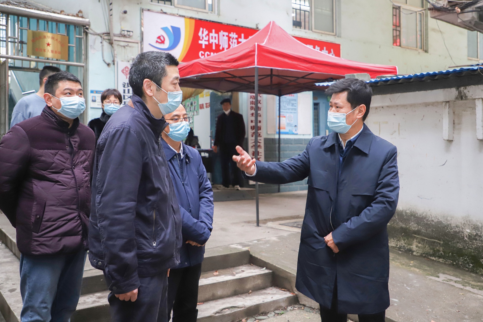 华大在线讯(记者 华轩)11月29日,校党委书记赵凌云,校党委副书记查道林等一行前往环球(中国)社区、南湖学生宿舍及南湖校区商户,调研疫情防控措施落实、党员干部下沉一线、学生思想动态等情况。学校办、党委组织部、党委宣传部、党委学工部、人事部、后勤保障部、保卫处等相关负责人参加检查。