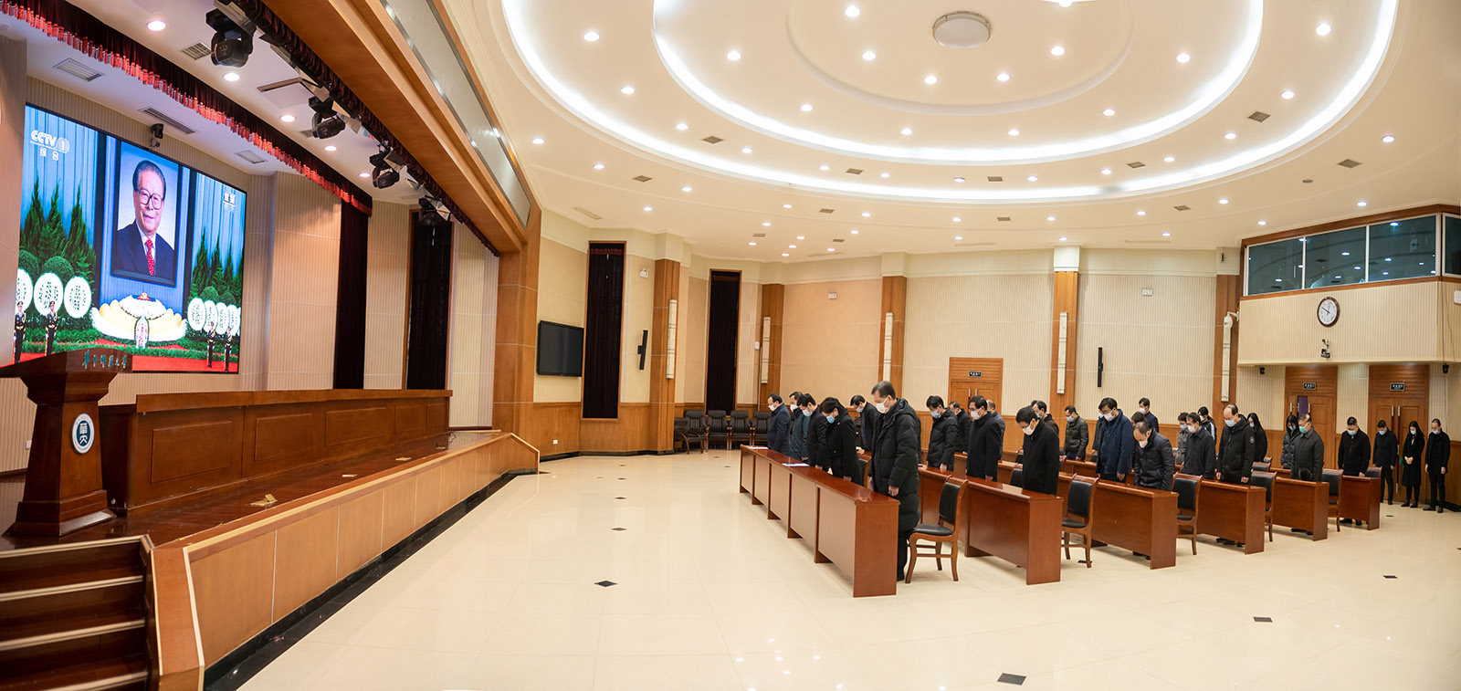 在学校党委统一安排部署下,环球在线官网师生收听收看了江泽民同志追悼大会。上午10时,在科学会堂一楼报告厅,全体校领导、校党委理论学习中心组(扩大)成员、老同志代表、民主党派代表、学生代表集中收看追悼大会;各单位也以多种形式组织师生收听收看追悼大会。大家集体默哀,怀着极其沉痛的心情悼念江泽民同志,深切缅怀江泽民同志的丰功伟绩和崇高风范,寄托哀思。当天,学校下半旗志哀。