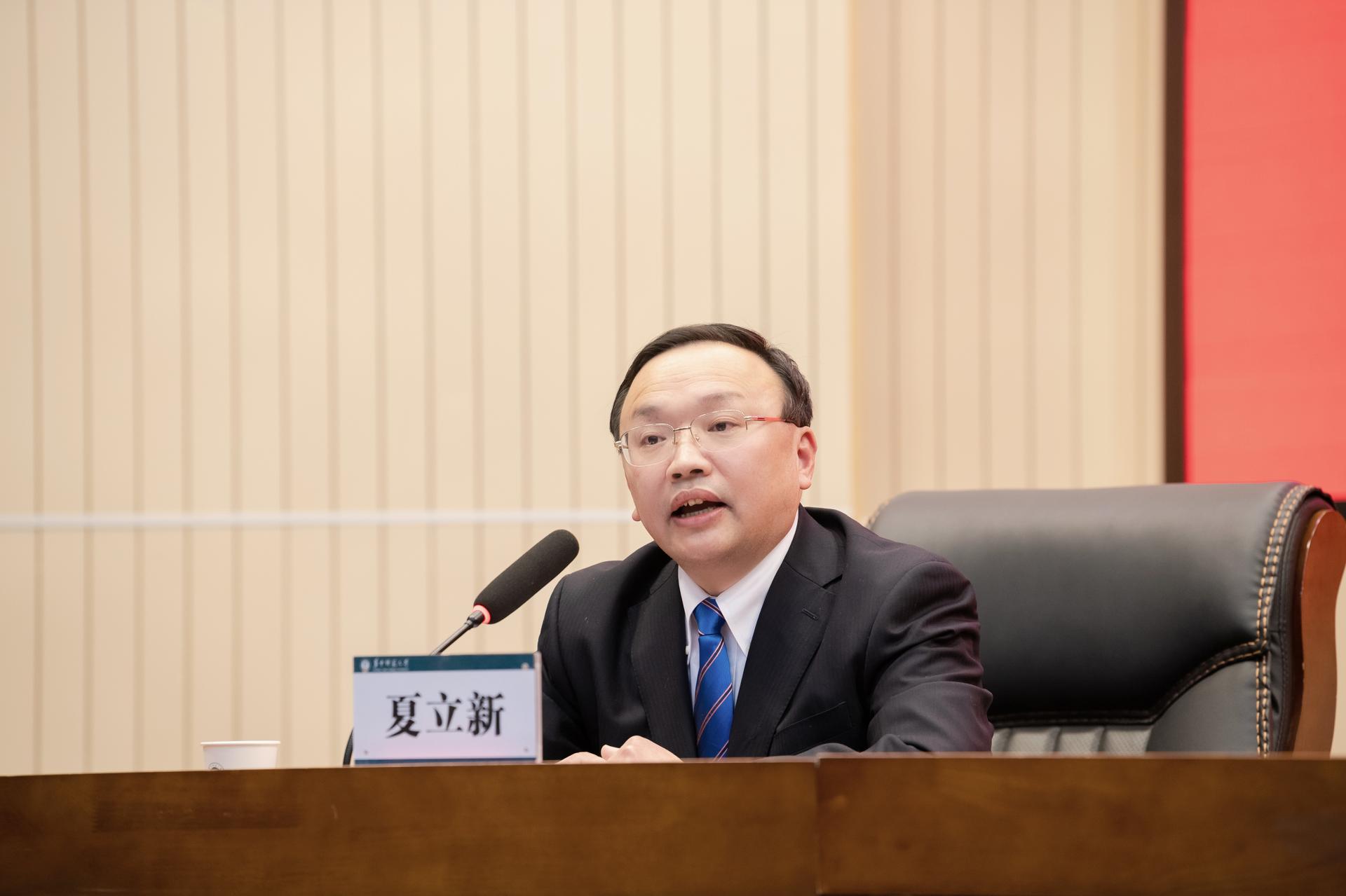 夏立新同志表示完全拥护、坚决服从教育部党组的决定,衷心感谢教育部党组和湖北省委的信任,衷心感谢全校师生的支持,担任新一任校党委书记,深感责任重大、使命光荣。他表示,将尽快转换角色,履职尽责、全力以赴,恪守“对党忠诚”的品格,坚定不移坚持正确的办学方向;坚守“国之大者”的情怀,牢牢把握立德树人的根本任务;接续“勤耕力作”的担当,奋力实现建设世界一流大学的发展目标;保持“永远在路上”的清醒,着力营造廉洁治校治学的政治生态,和郝芳华校长一道,团结带领学校领导班子、全体教职员工和广大校友,齐心协力、坚定笃行,跑好接力赛、赛出好成绩,为铸就新时代环球(中国)事业发展新的篇章而不懈奋斗。