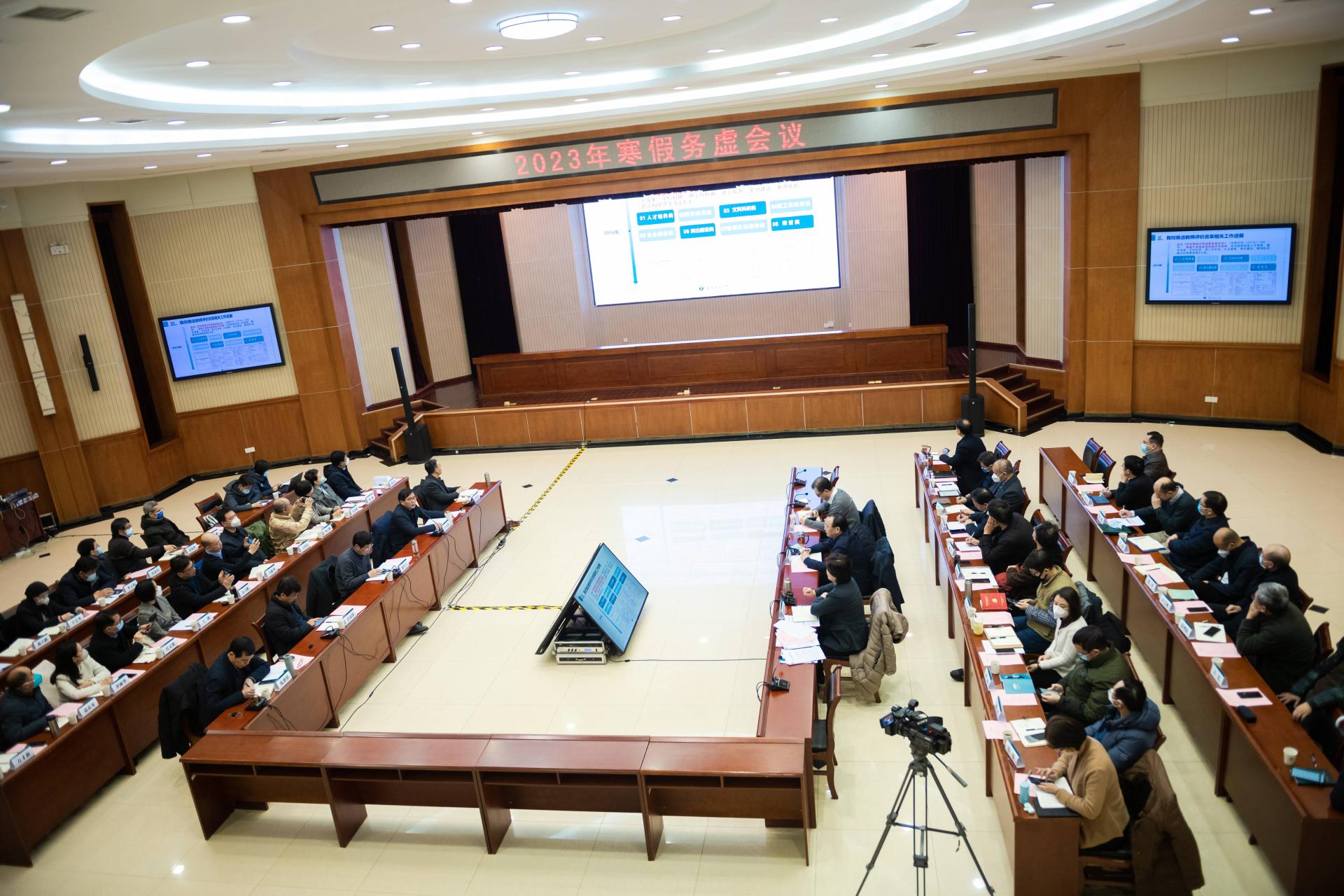 华大在线讯(记者 华轩)务虚促实谋发展,凝心聚力共奋进。2月8日,学校2023年寒假务虚会议在科学会堂一楼报告厅召开。全体校领导、校“两委”委员以及相关学院和职能部门主要负责人,围绕“全面推进教育评价改革”和“高质量推进新一轮学科建设”两大主题,立足学校实际,查摆检视问题,深入交流研讨,为学校开好事业发展新局建言献策。校党委书记夏立新、校长郝芳华分别主持会议并讲话。