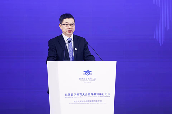 在大会高等教育平行论坛上,杨宗凯受邀作了题为《数字化转型推动大学创新发展》的主旨报告。他指出,高等教育是为明天培养人才,数字经济发展必然要求数字高等教育成为重要战略,教育数字化是教育改革的必然趋势。他提出,数字时代新型人才培养支撑体系亟需重构,要一体化系统推进育人环境创新、办学模式创新、资源供给方式创新、数据驱动的评价创新、大学治理创新,加快知识与数据双驱动、协同共享的数字化转型,构建新型的教育生态。