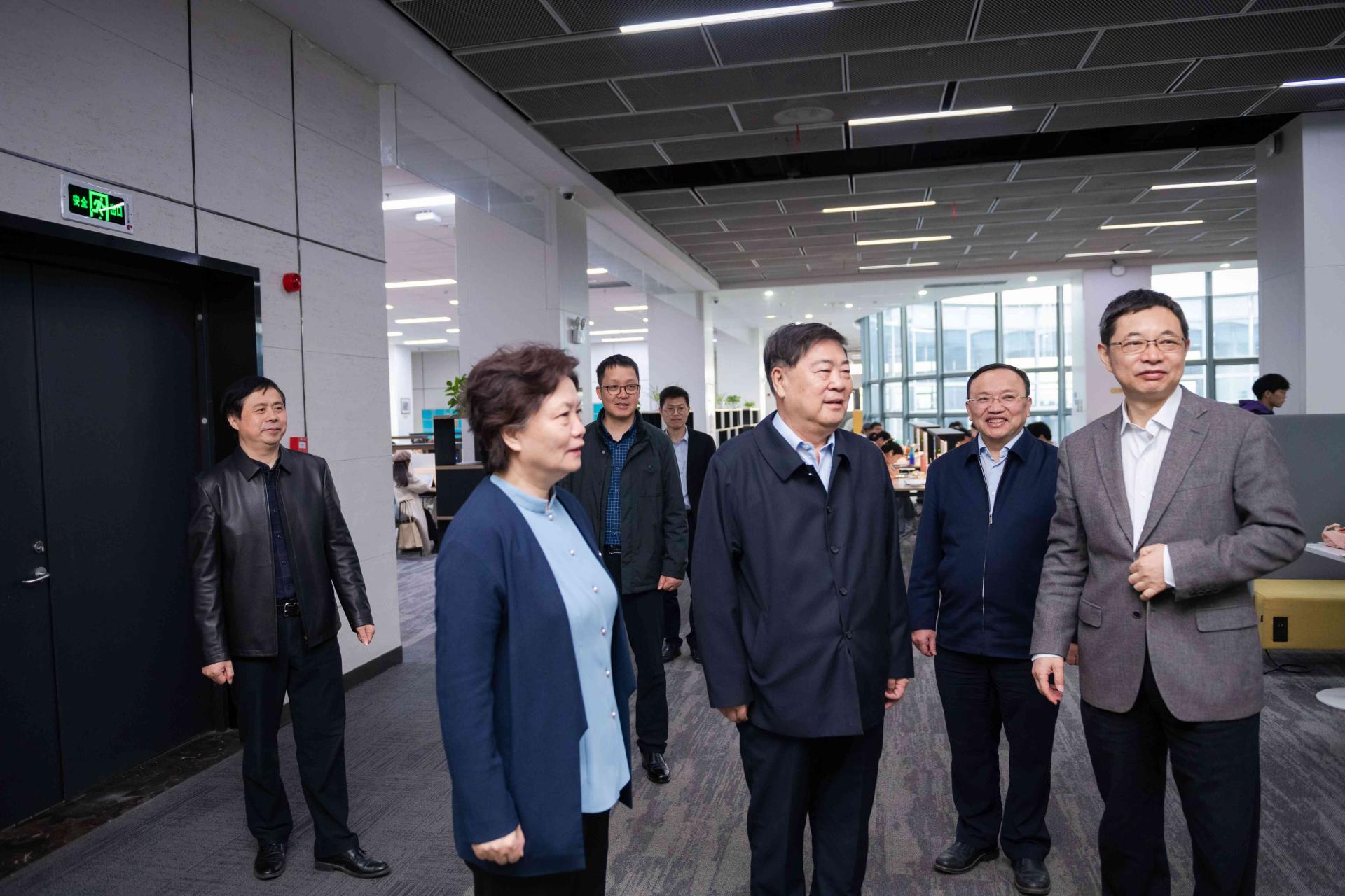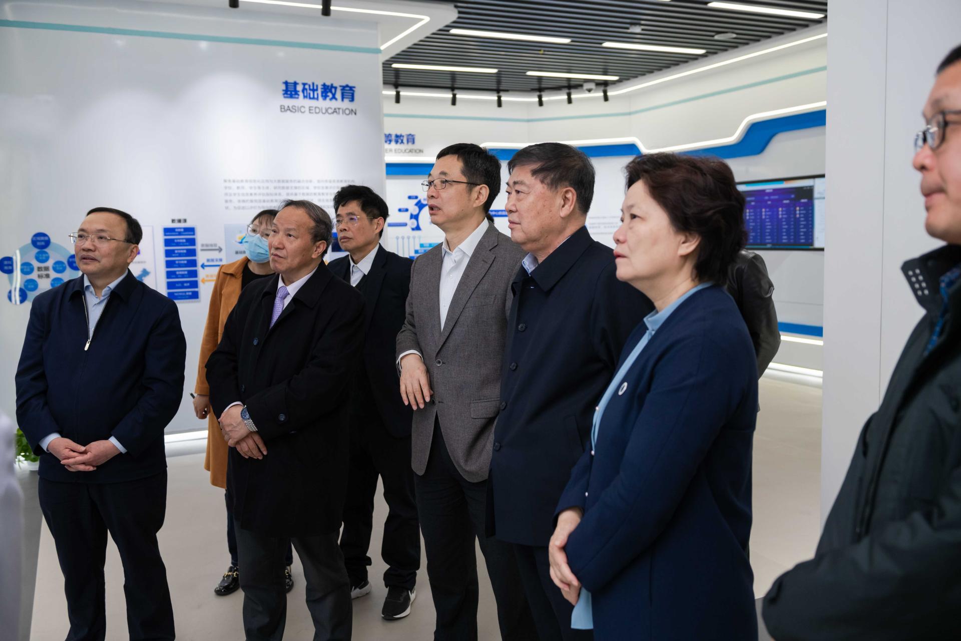 在校党委书记夏立新,校长郝芳华,国家数字化学习工程技术研究中心兼教育大数据应用技术国家工程研究中心主任杨宗凯教授,校党委副书记、纪委书记陈厚丰的陪同下,瞿振元一行参观了南湖校区智慧教室、图书馆和教育大数据应用技术国家工程研究中心。
