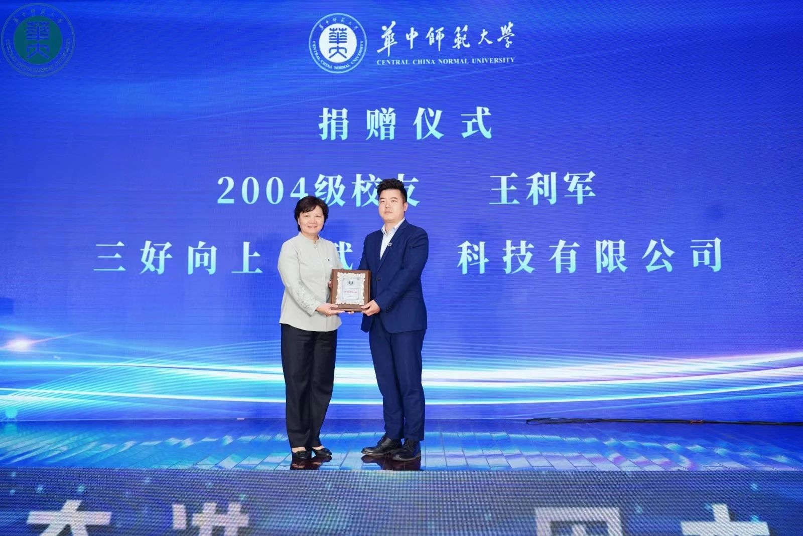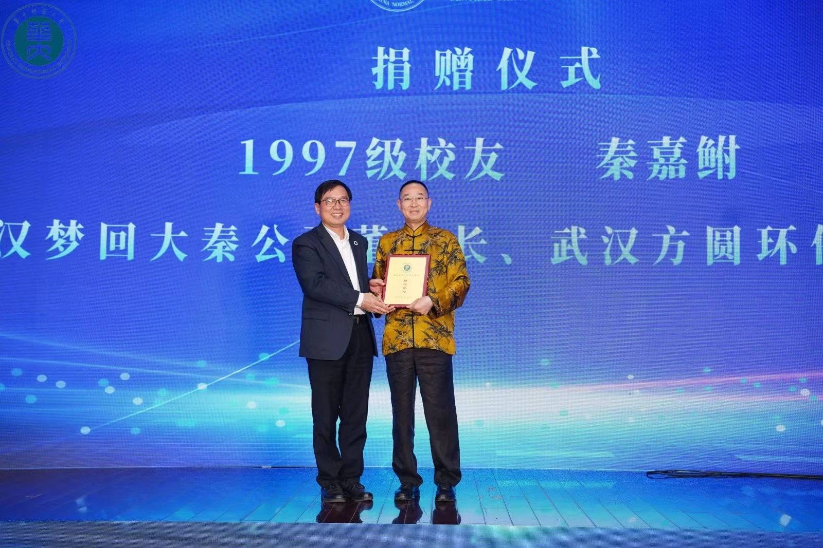 校友总会秘书长郭庆代表校友总会向学院校友会赠送纪念品