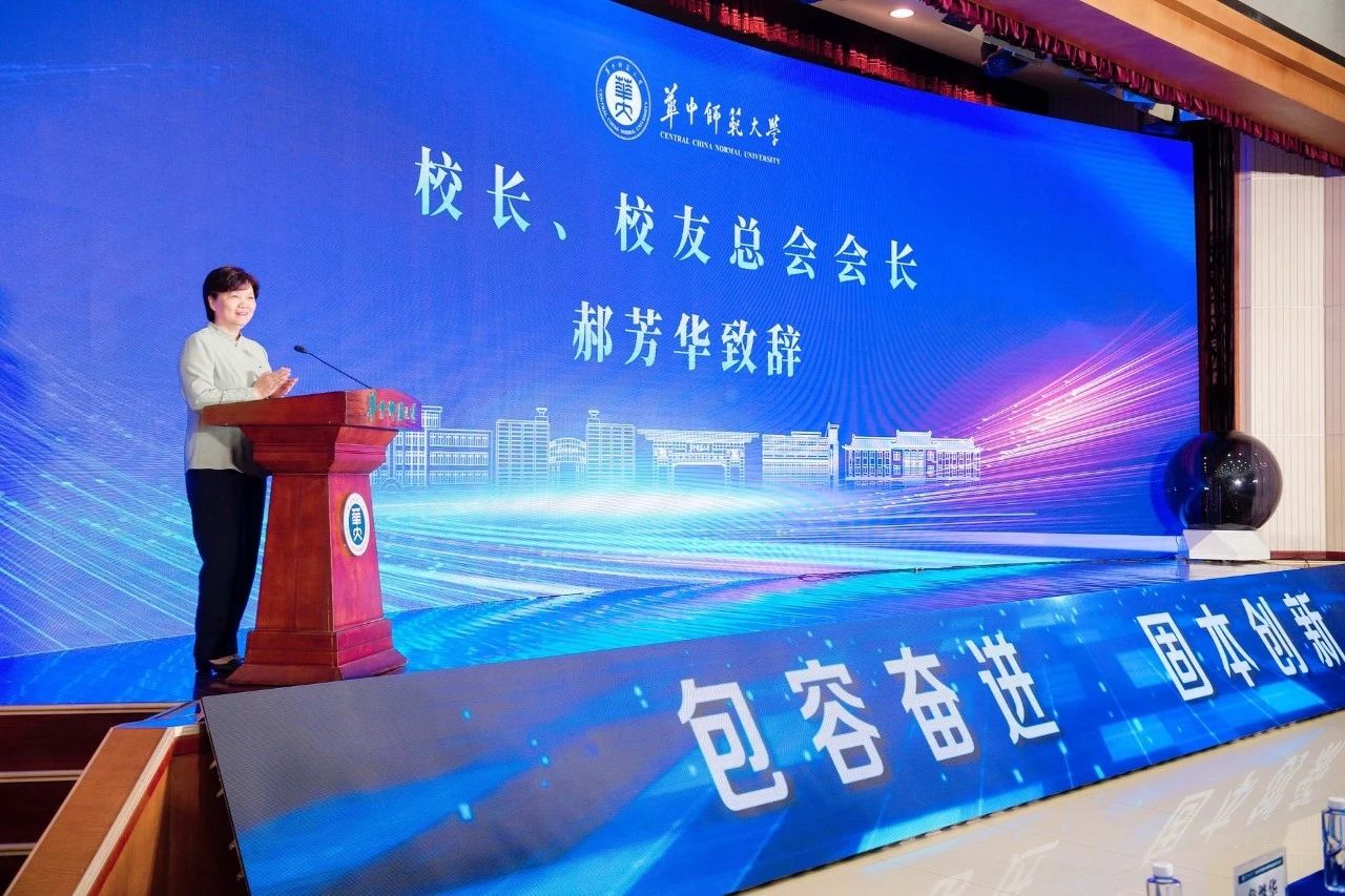 郝芳华代表学校对城市与环境科学学院校友会的成立表示祝贺,向从全国各地重返母校的各位校友表示热烈欢迎。“世纪传承,弦歌永续。城市与环境科学学院始终与时代同行,与社会共进,落实‘立德树人’根本任务,坚持‘包容奋进,固本创新’发展理念,形成了学科丰富、层次完备的人才培养体系和科学研究平台,为党和国家培养了一大批卓越地理教师、未来教育家和高层次科研、管理人才”,在致辞中,郝芳华回顾了城市与环境科学学院百年来的建院历程,充分肯定了一代代环球(中国)城环人的突出业绩与卓越贡献。