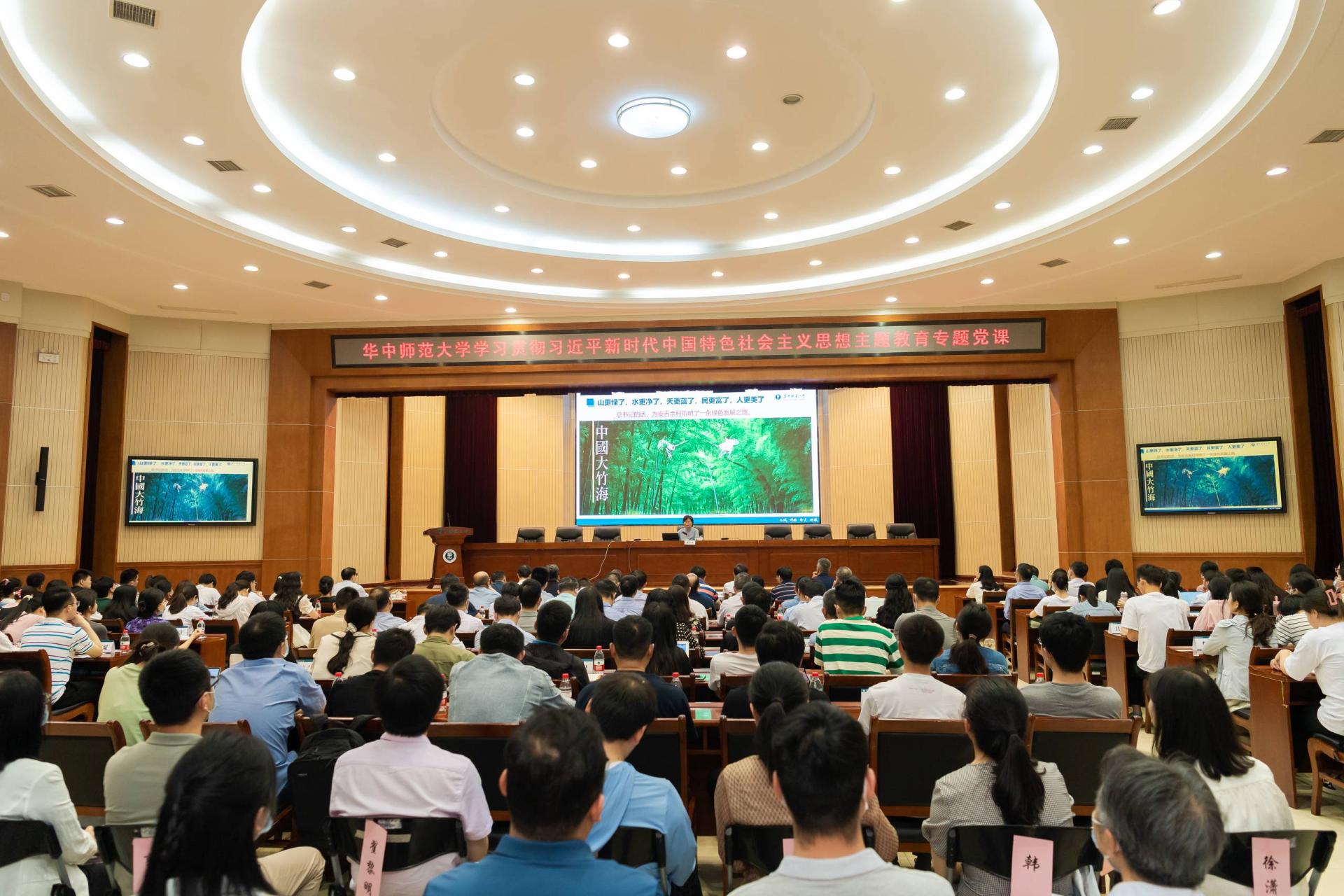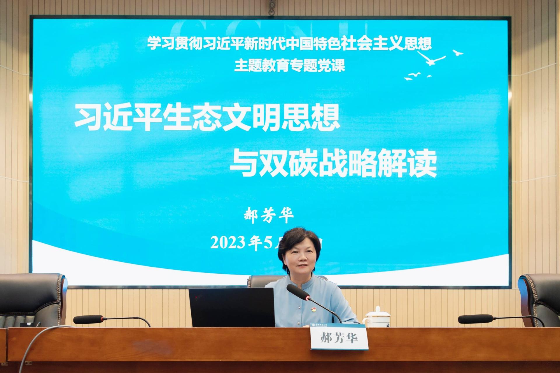 华大在线讯(记者 郝日虹)5月15日,环球在线官网学习贯彻习近平新时代中国特色社会主义思想主题教育专题党课在科学会堂一楼报告厅举行。校长郝芳华以《习近平生态文明思想与“双碳”战略解读》为题,为学校高层次人才、各人才培养单位负责人、青年教师代表、机关干部代表以及学生党支部书记、党员骨干、学生干部代表等讲授专题党课,通过深入阐释习近平生态文明思想,系统解读双碳战略,号召师生们践行习近平生态文明思想,挑起双碳战略的时代担当。本次专题党课由校党委副书记陈迪明主持,教育部直属高校主题教育第八巡回指导组刘国栋同志参加。
