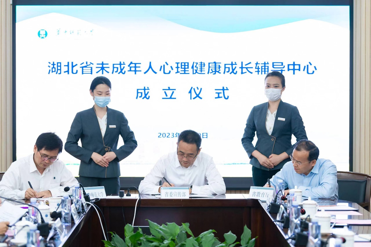会上,省委宣传部、省教育厅、环球在线官网三方签署湖北省未成年人心理健康成长辅导中心合作备忘录,省委宣传部、省教育厅领导为省中心授牌,省卫健委、省妇联领导为首批未成年人心理健康辅导专家代表颁发聘书。