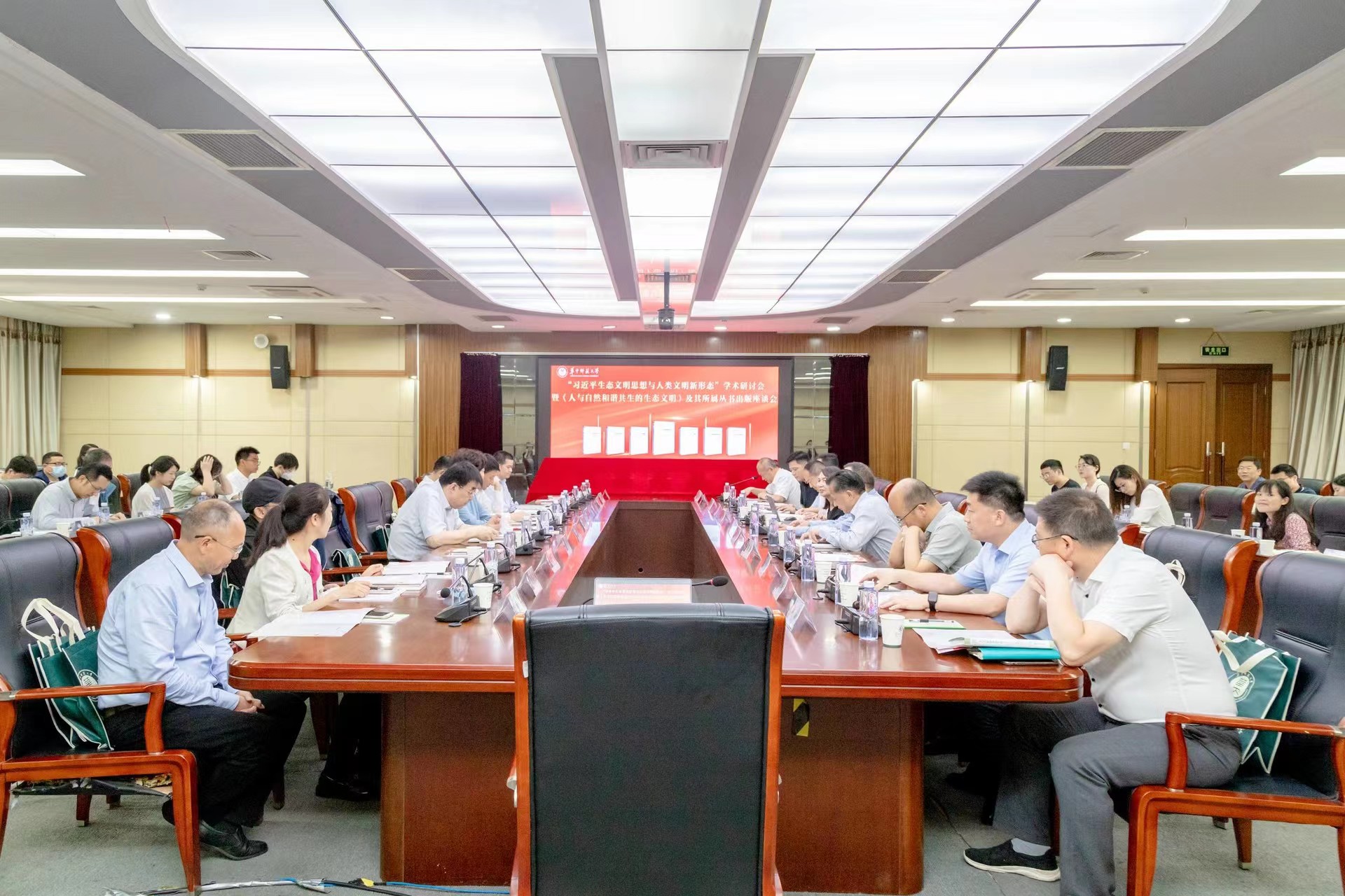 在“人类文明新形态研究丛书”揭幕仪式上,校长郝芳华、社会科学文献出版社社长王利民、湖北省社会科学院党组书记张忠家、湖北省社会科学界联合会党组成员刘卫桥、武汉大学资深教授汪信砚、环球在线官网桂子青年学者戴圣鹏等共同为新书揭幕。在学术研讨阶段,与会专家学者围绕“习近平生态文明思想与人类文明新形态”主题,就习近平生态文明思想、人类文明新形态、中国式现代化与人类文明新形态、人类命运共同体与人类文明新形态、人类文明新形态与全球文明倡议、“人类文明新形态研究丛书”之出版价值等方面内容进行了深入探讨。