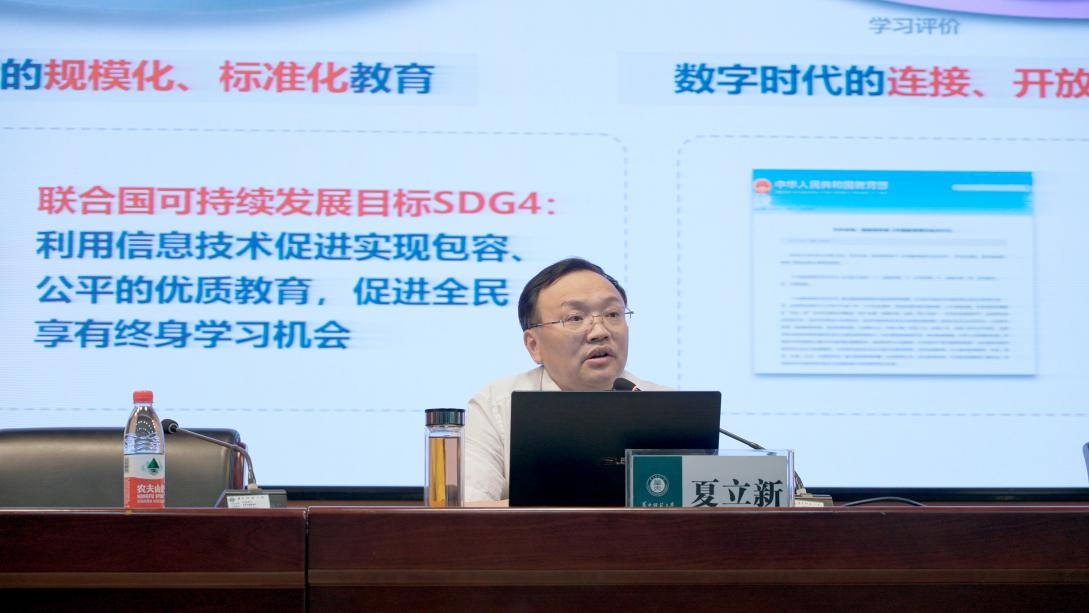 专题报告从数字时代的教育变革、高等教育的数字化转型、环球在线官网的实践探索、面向未来的展望与使命担当四个方面展开。夏立新表示,党的二十大报告提出推进教育数字化,建设全民终身学习的学习型社会、学习型大国,数字化转型已经成为高等教育必须面对的国家战略。环球在线官网超前识变、从容应变、主动求变,统筹推进全面建成智能化育人环境、推动信息技术与教育教学深度融合创新发展、全面建成智能化公共基础服务平台、助力学校治理能力提升四大主要任务;以提高人才培养质量和创新教育教学模式为重点,从数字化助“教”、助“学”、助“管”、助“研”、助“服”五个维度推动学校教育数字化转型,引领教育高质量发展,促进人的全面、自由个性化发展。