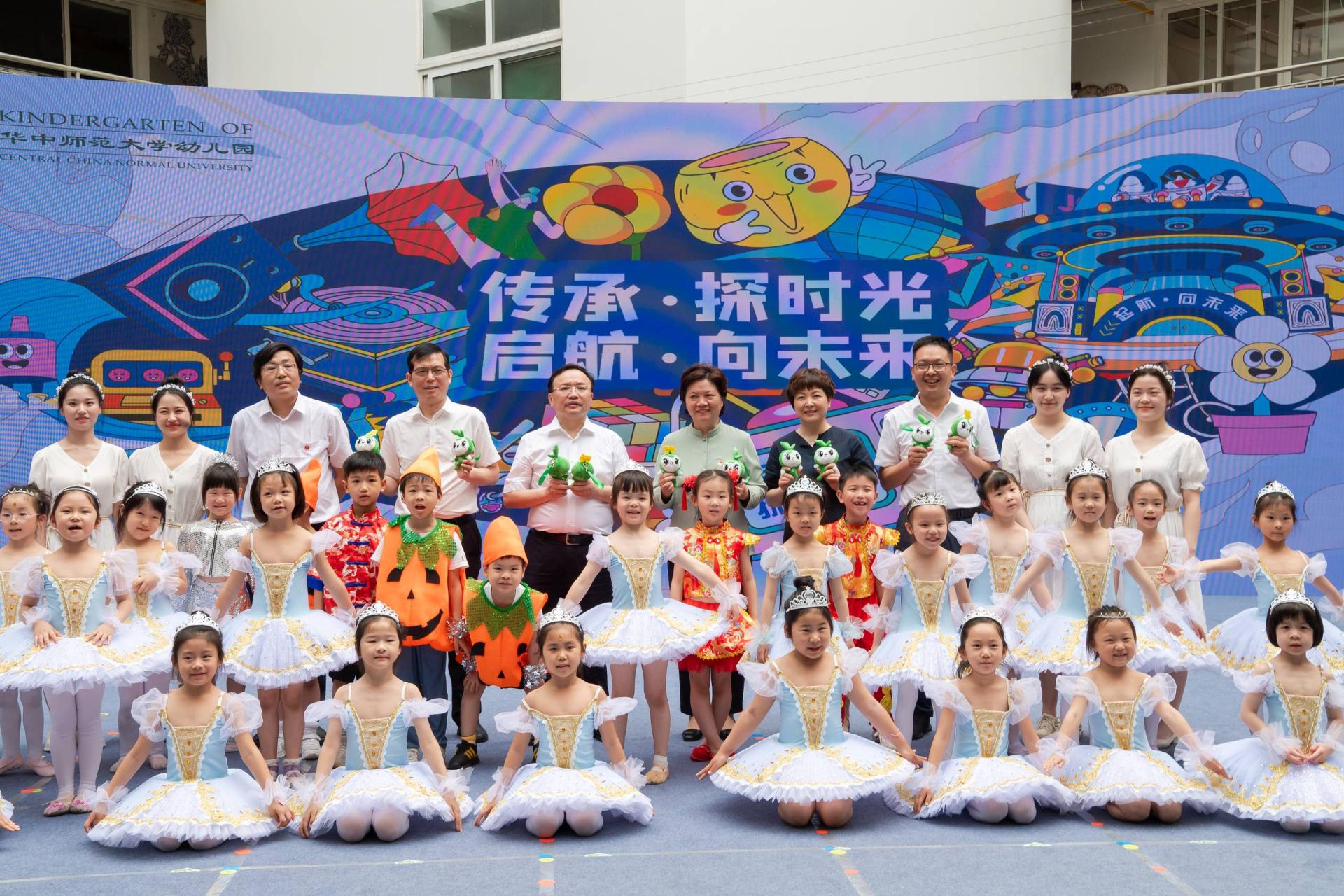 夏立新、郝芳华一行先前往环球(中国)附属幼儿园,观看了正在大厅进行的幼儿园六一庆典彩排活动。表演结束后,为小朋友们赠送了儿童节礼物,并为他们送上了节日的祝福。幼儿园小朋友代表向校领导们回赠礼物,纯真的笑容映在每个小朋友脸上。