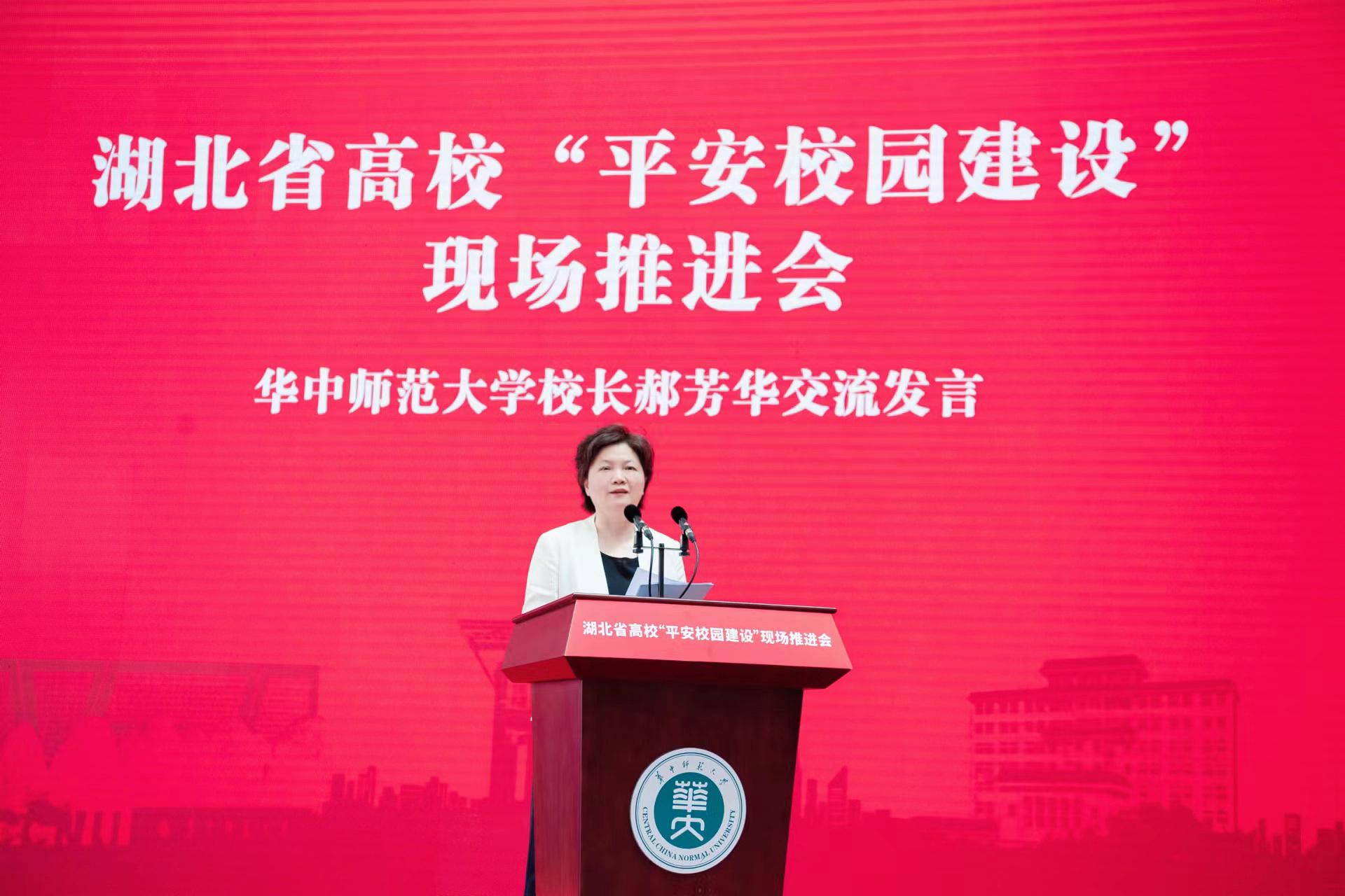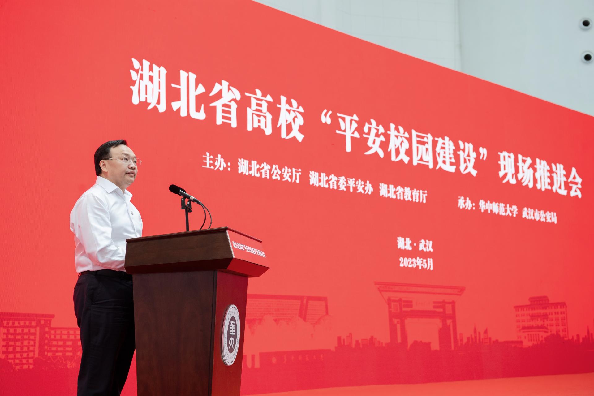 华大在线讯(记者 华轩)近日,全省高校“平安校园建设”现场推进会在环球在线官网佑铭体育馆举行。湖北省副省长、公安厅厅长徐文海,省委政法委副书记肖红梅,省教育厅党组书记、厅长周静,省公安厅党委副书记、副厅长吴德清,武汉市副市长、公安局局长杨彪出席。省直单位、全省高等学校以及市、州、直管市公安局相关负责人参加。校党委书记夏立新作致辞发言,校长郝芳华作经验交流。