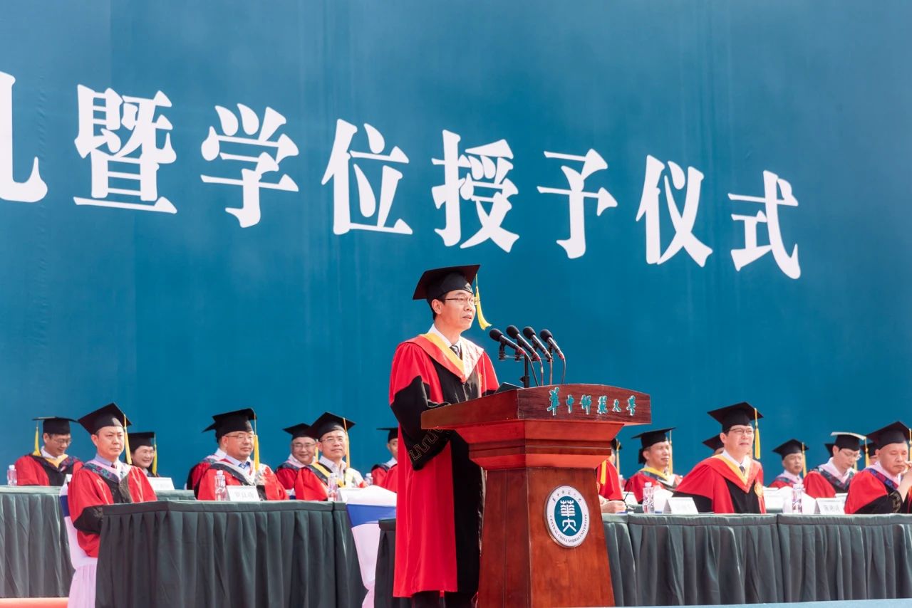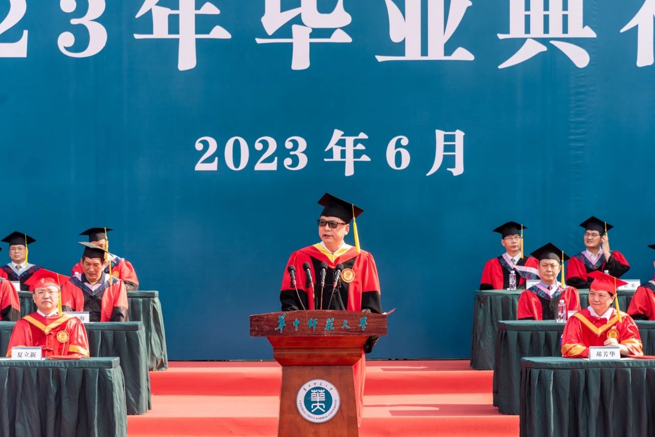 教师代表、马克思主义学院院长、博士生导师万美容教授回顾了自己在环球(中国)求学、工作的四十五个春秋的奋斗岁月,感恩桂子山给予他丰富的知识、美丽的爱情和有意义的人生。他希望毕业生们在未来的人生道路上不忘母校培养,不负国家期待,传播环球(中国)精神,实现人生价值。