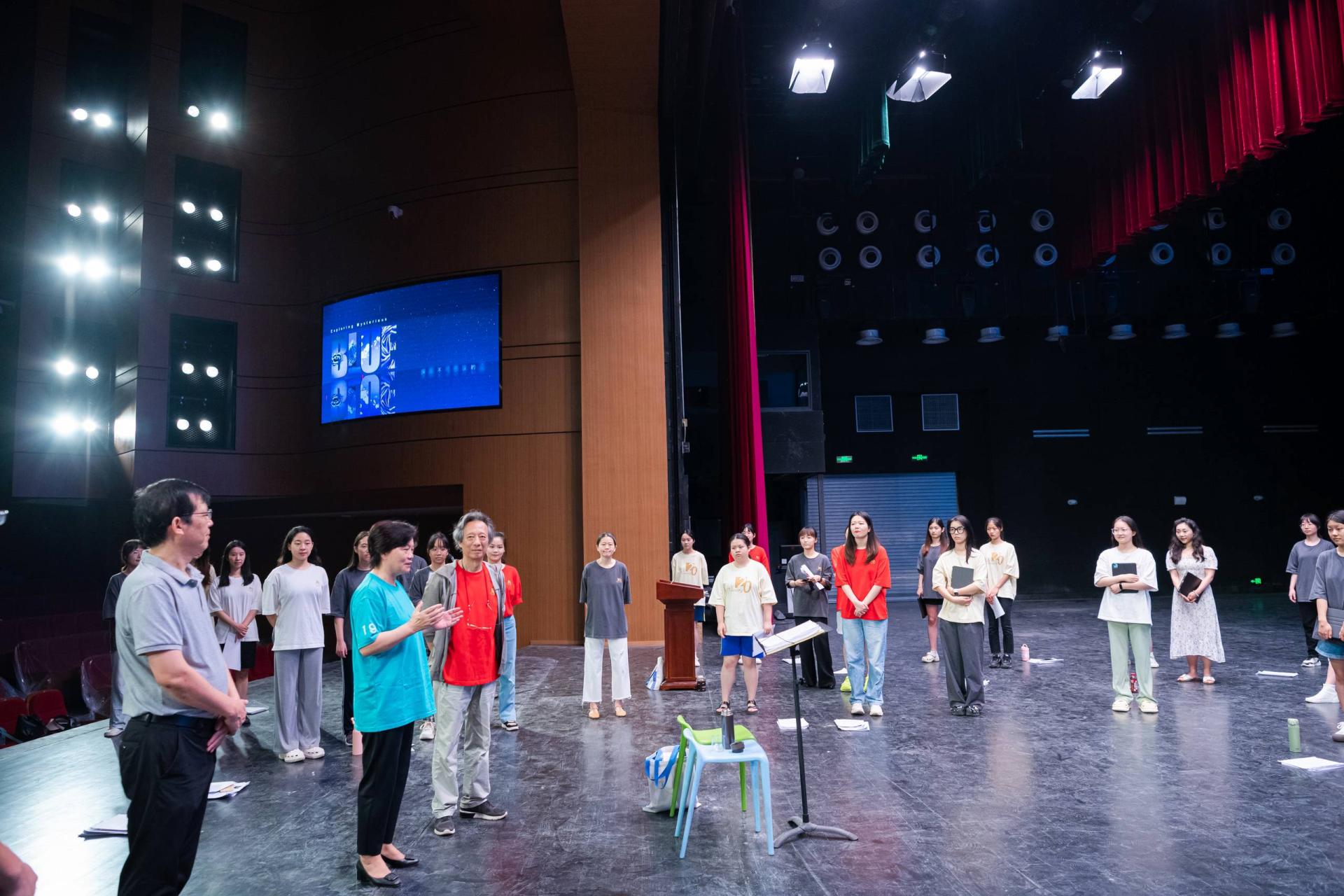 走进新大学生活动中心大礼堂,Tiankong合唱团在指挥田晓宝教授的指导下正在认真排练。郝芳华叮嘱大家,“Tiankong合唱团是环球(中国)的,也是中国的、世界的。你们即将代表环球(中国)到国家大剧院演出,希望你们把最美的声音表现出来,展示出环球(中国)的精神风貌,迎接学校120周年校庆的到来”。她强调,学校相关单位要为合唱团集训备演提供良好环境和保障服务,确保师生排练安心。