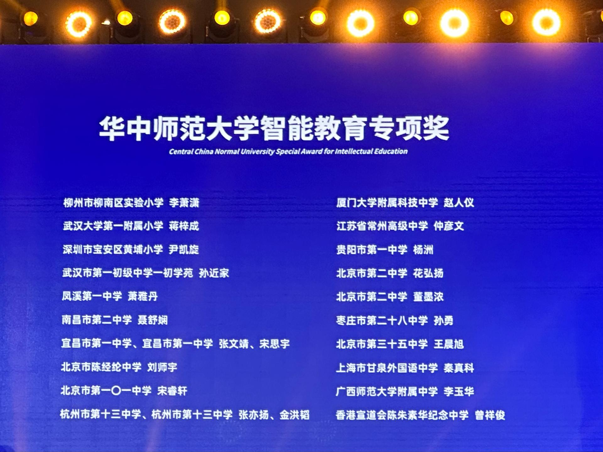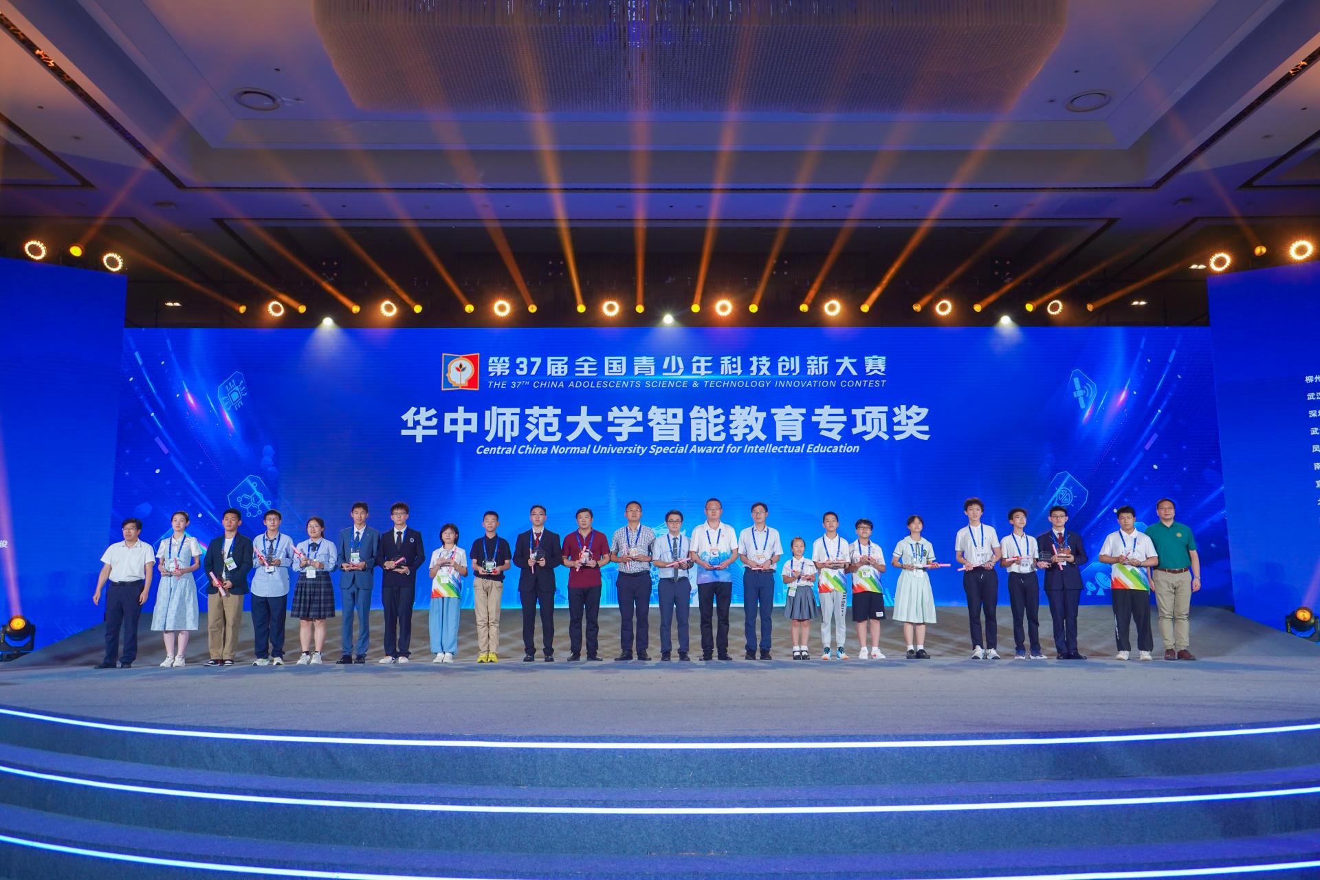 华大在线讯(通讯员 朱潇潇)8月24日,第37届全国青少年科技创新大赛专项奖颁奖典礼在光谷科技会展中心举行。副校长彭双阶为获奖选手颁发“智能教育专项奖”。