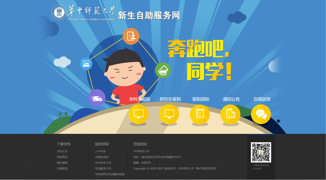 “智慧迎新”赋能“数字环球(中国)”。为方便新生报到,全体本科生、研究生新生继续实施“云报到”。在正式开学前,全体新生已通过“新生自助报到系统”办理了“宿舍选取”“信息采集”等多项业务,购买物品直接由学校配送至学生床位,学生线下报到时基本实现“拎包入住”。此外,学生线下报到时,迎新大屏也会实时显示报到数据。