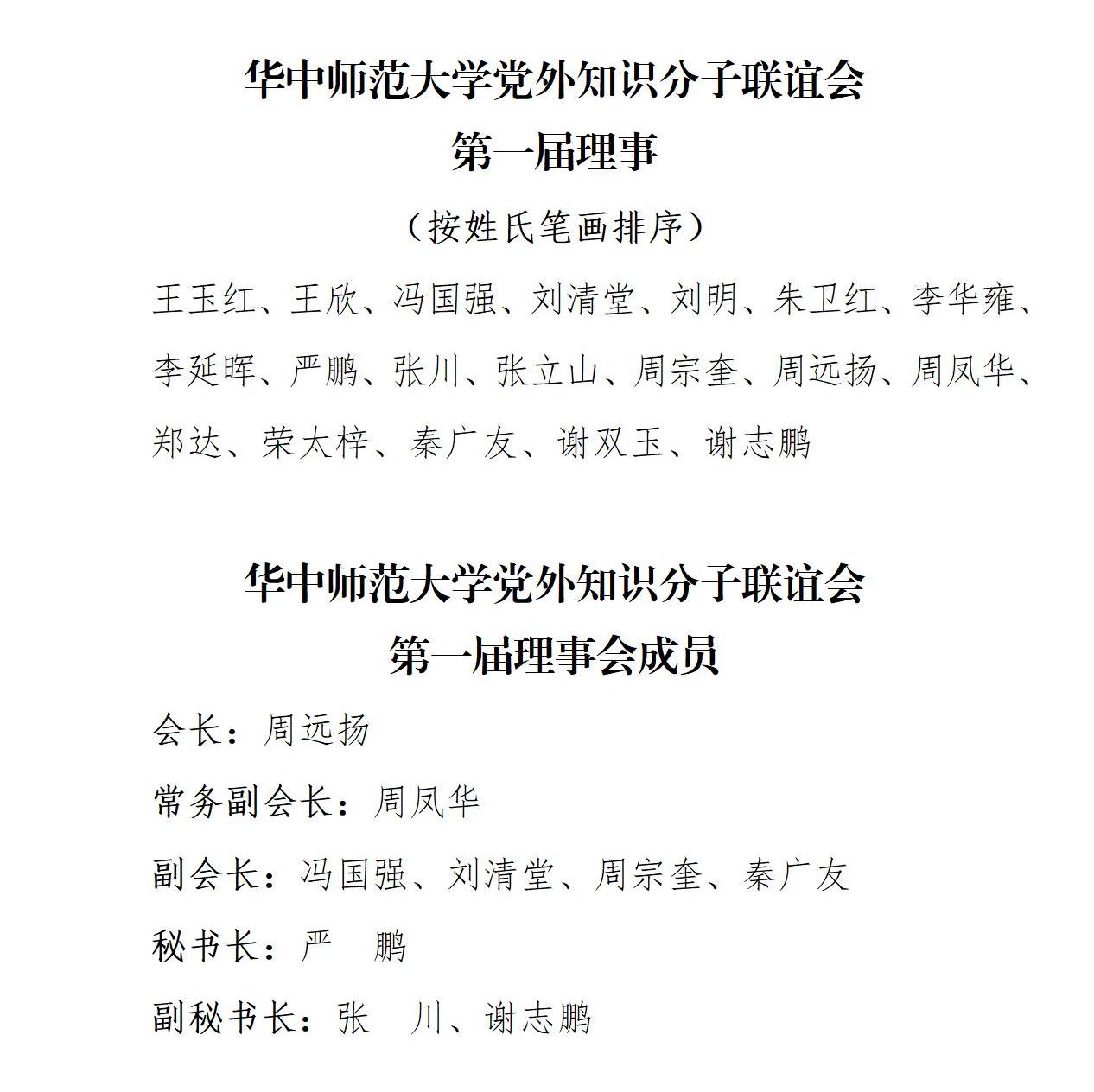 大会审议并通过了《环球在线官网党外知识分子联谊会章程》和《环球在线官网党外知识分子联谊会第一次会员代表大会选举办法》,表决产生环球在线官网党外知识分子联谊会第一届理事,选举产生环球在线官网党外知识分子联谊会(以下简称“知联会”)第一届理事会会长、常务副会长、副会长、秘书长和副秘书长。
