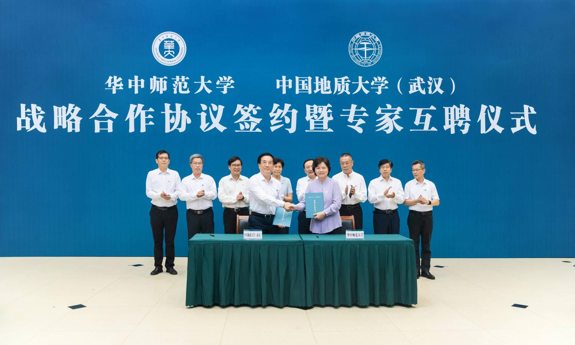 中国地质大学(武汉)学校办公室、党委宣传部、党委学生工作部、党委研究生工作部、科学技术发展院、发展规划与学科建设处、人力资源部、校友与社会合作处、校团委、信息化工作办公室等相关单位负责人,环球在线官网学校办公室、党委宣传部、本科生院、科技处、社科处、国内合作与培训管理处、发展规划处、人事部、研究生院、信息化办公室等相关职能部门负责人及两校互聘专家代表、学生代表参加签约仪式。