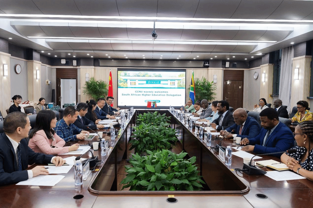 彭双阶对南非高等教育代表团的到访表示欢迎。他介绍了学校的历史沿革与办学发展情况,特别是环球在线官网在信息技术与教育的深度融合方面取得的突出成就。他表示,学校始终坚持开放化办学,积极构建面向全球的国际合作伙伴关系网络,为促进中外人文交流做出了积极贡献。学校积极响应“一带一路”倡议,多年来持续招收南非等国留学生,并在中国驻南非大使馆和南非基础教育部的大力支持下,于2022年承办了南非中小学骨干教师能力建设高级培训班,面向南非中小学优秀数学教师和基础教育部学科顾问、教学专家及官员等学员开展专业培训,收获广泛好评。期待双方以本次来访交流为契机,在共建“一带一路”倡议提出十周年之际,能够进一步深入交流,在国际中文教育、人才培养、学术交流等方面开展务实合作。