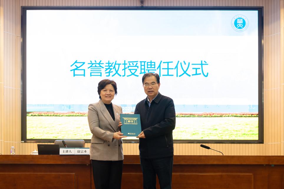 华大在线讯(通讯员 申墁烨 朱潇潇)11月10日,前沿交叉科学论坛在科学会堂一楼报告厅举行。中国科学院院士、西安交通大学教授徐宗本应邀作《AI与数学:融通共进的时代》主题报告。校长郝芳华出席论坛并为徐宗本院士颁发环球在线官网名誉教授聘书。论坛由副校长任友洲主持。
