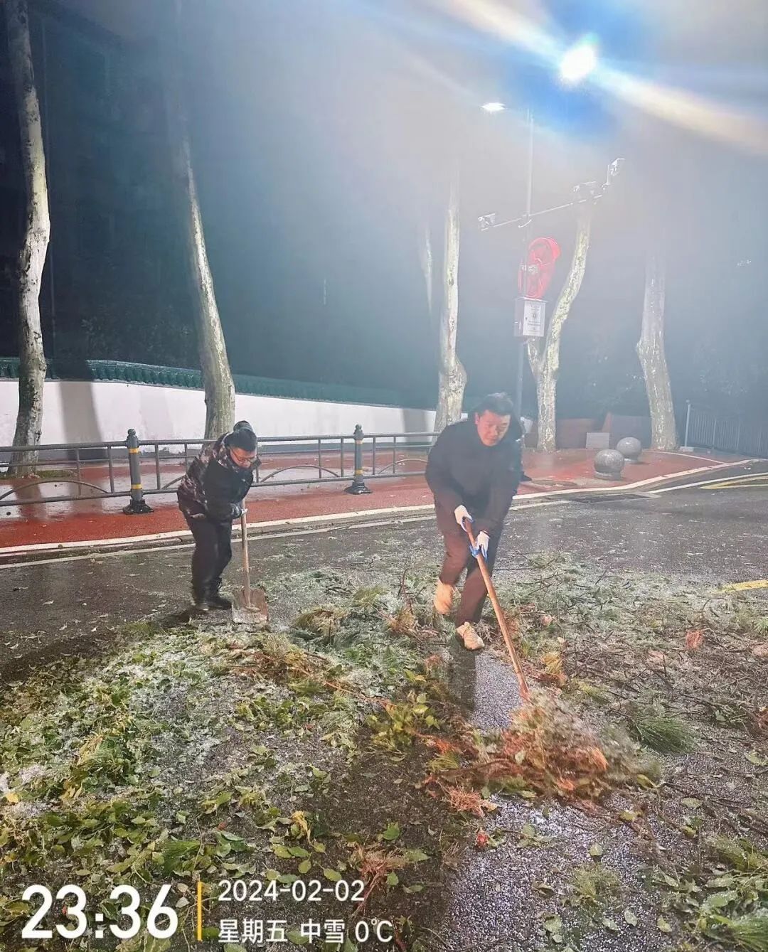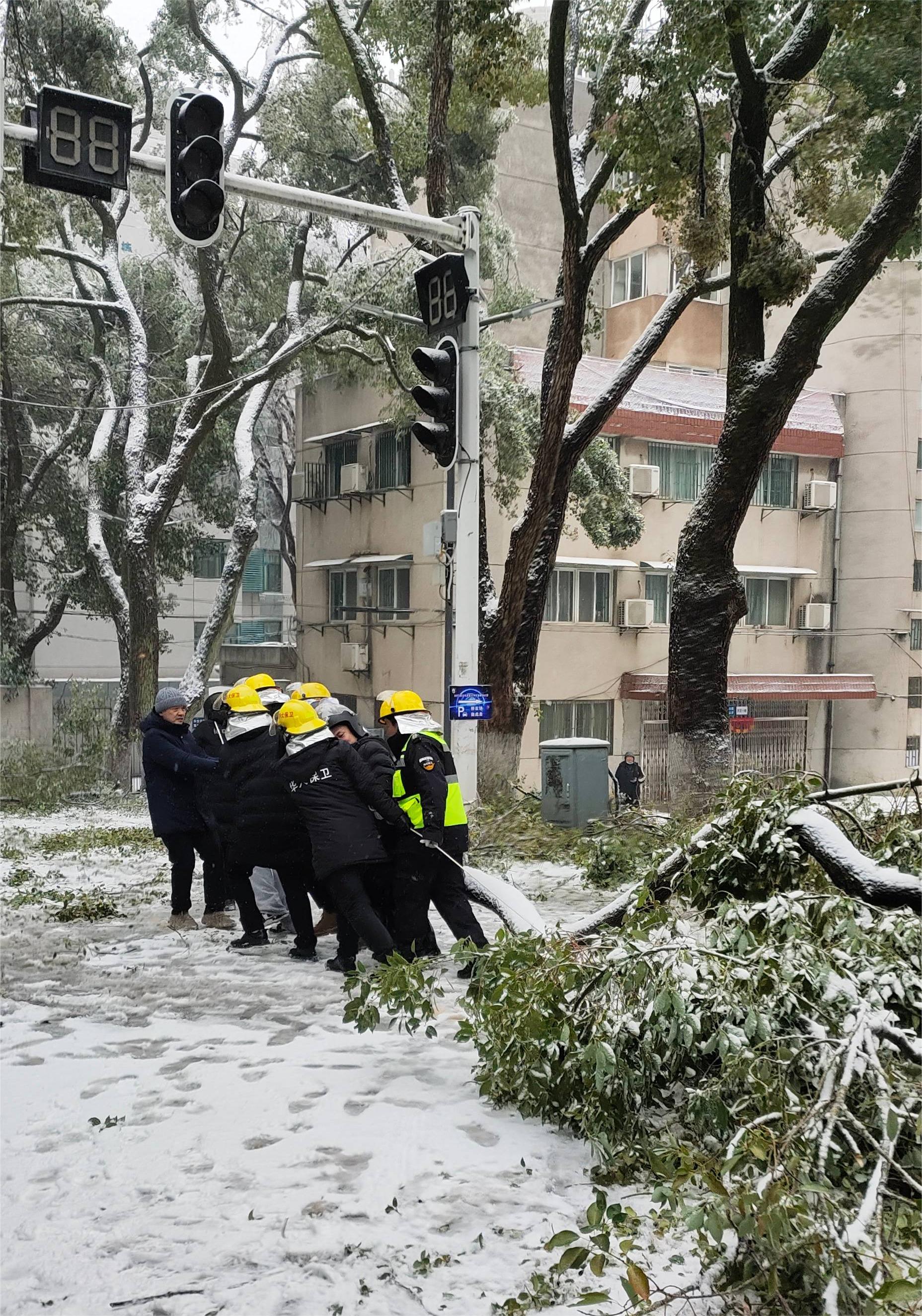 “保卫处按应急预案,闻令而动,及时布置了相关安全防范工作。一方面,做好各个校门及周边的防滑及交通疏导工作;另一方面,加大巡查巡逻力度,一旦发现断裂掉落的树枝和倒伏树木,会及时处置并清理到路边,全体干部职工齐上阵,尽全力确保校园重点路段、重点路口、各门岗安全、有序、畅通,尽全力恢复校园安全、宁静、有序状态。”保卫处主要负责人说。