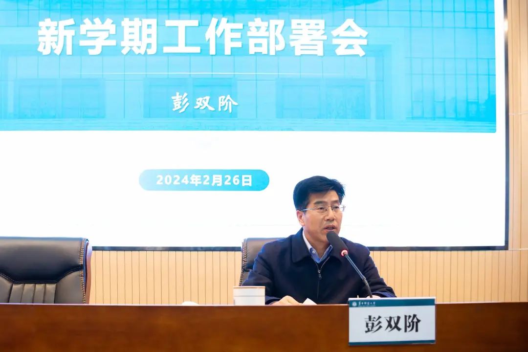 校长彭双阶向全体教职工致以新春问候,向寒假期间坚守工作岗位、奋战在一线的教职员工表示衷心感谢。2024年是实现学校“十四五”规划目标任务和学校第十二次党代会战略部署的关键之年。彭双阶表示,学校要坚持以习近平新时代中国特色社会主义思想为指导,深入学习贯彻党的二十大精神和习近平总书记关于教育的重要论述,以高质量完成巡视整改和本科教育教学审核评估为工作主线,以全面提高人才培养质量和学科建设水平为主攻方向,以落实教育强国建设规划纲要为关键抓手,以深化综合改革为发展动力,加快推动教育数字化转型,加快落实学校“十四五”规划和第十二次党代会战略部署,加快推进学校治理体系和治理能力现代化,以更加优异的办学成绩向新中国成立75周年献礼。
