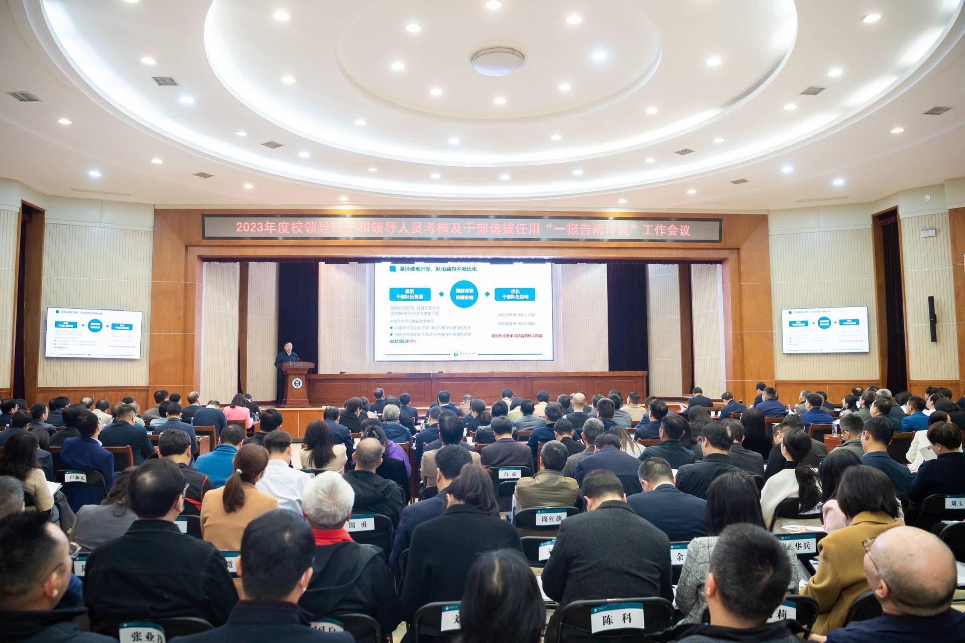 华大在线讯(通讯员 张栩晨)3月21日,环球在线官网召开2023年度校领导班子和领导人员考核及干部选拔任用“一报告两评议”工作会议。校领导班子成员、全体中层干部及其他各方面代表参会。会议由校长彭双阶主持。