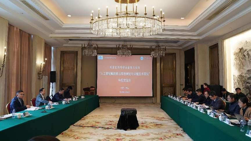 杨宗凯介绍了项目整体工作进展、阶段性成果及下一步工作计划。相关课题负责人围绕研究任务实施情况进行汇报。在听取项目组汇报和深入讨论的基础上,与会专家对项目取得的进展给予充分肯定,并聚焦“人工智能+教育”开展有组织科研,紧密围绕项目总体目标与关键科学问题协同攻关等方面提出意见建议。