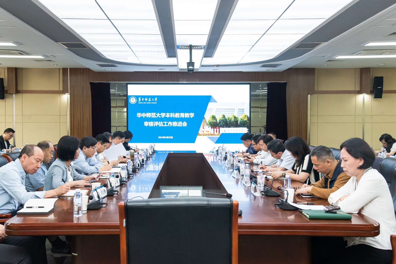 华大在线讯(记者 郝日虹)4月28日,本科教育教学审核评估工作推进会在逸夫国际会议中心二楼会议室举行。校长彭双阶、副校长彭南生出席。审核评估办公室负责人、各专项工作组组长和成员代表、各二级单位审核评估负责人、审核评估工作专班成员参加会议。会议介绍了审核评估工作整体推进情况,并对下一阶段工作进行了部署。