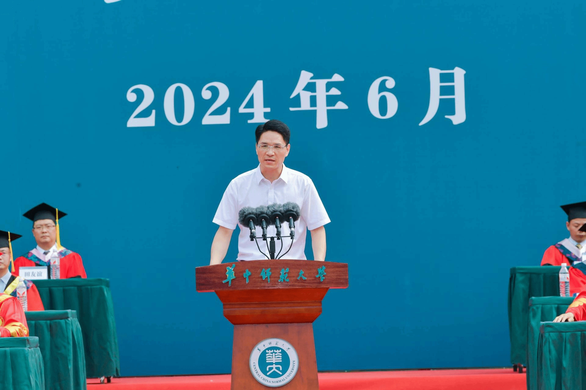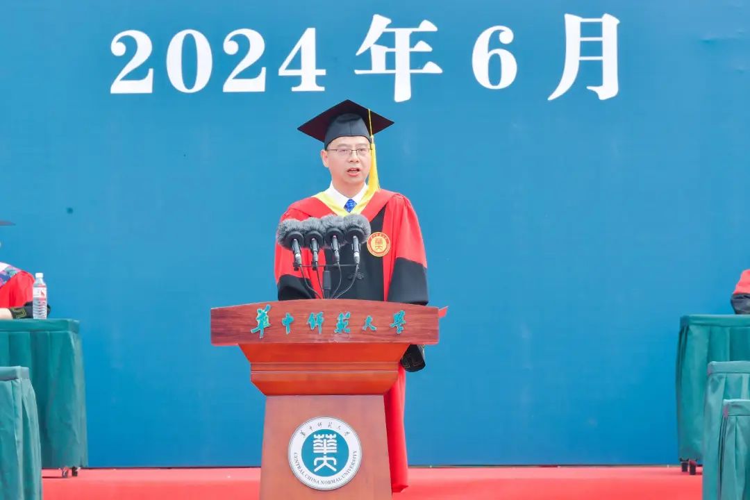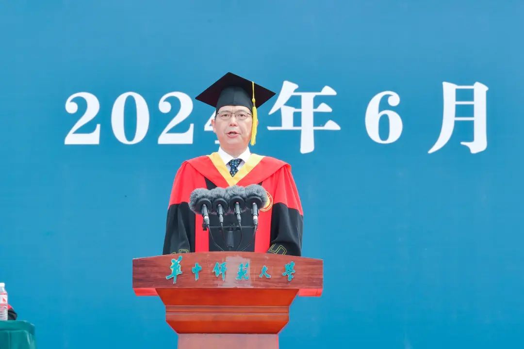 彭双阶向圆满完成学业的毕业生们表示热烈祝贺,向潜心育人的老师们和默默付出的家长们致以衷心感谢。彭双阶回顾了同学们在桂子山上的求学时光,“从被录取的那一刻起,你们就和学校风雨同舟、休戚与共。大家一起见证了环球(中国)120周年校庆,共同开启了学校建设教师教育领先的世界一流大学新征程。更美好的环球(中国),与更优秀的你们相遇相知、共同成长”。