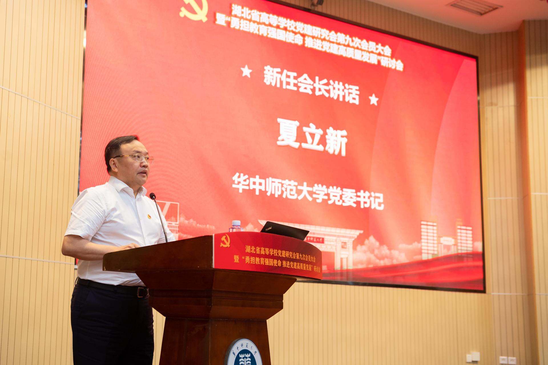 教育部思政司、湖北省委党建办、湖北省委教育工委以及环球在线官网相关领导致辞。会议听取并审议了湖北省高等学校党建研究会第八届理事会工作报告、财务工作报告及《换届选举办法》;审议通过研究会章程修订案和会费标准;选举产生了研究会新一届理事会,87位同志当选为研究会新一届理事会理事,28位同志当选为常务理事,夏立新当选为会长,武汉理工大学党委常委、副校长刘春江,中国地质大学(武汉)党委副书记王甫,中南财经政法大学党委副书记陈狮,中南民族大学党委副书记、副校长三朗扎西,长江大学党委书记王建平,武汉工程大学党委书记汪伟,湖北美术学院党委书记鲍清芬,武汉东湖学院党委书记湛俊三,长江职业学院党委书记童静菊当选为副会长,环球在线官网党委组织部常务副部长龚炜当选为秘书长。