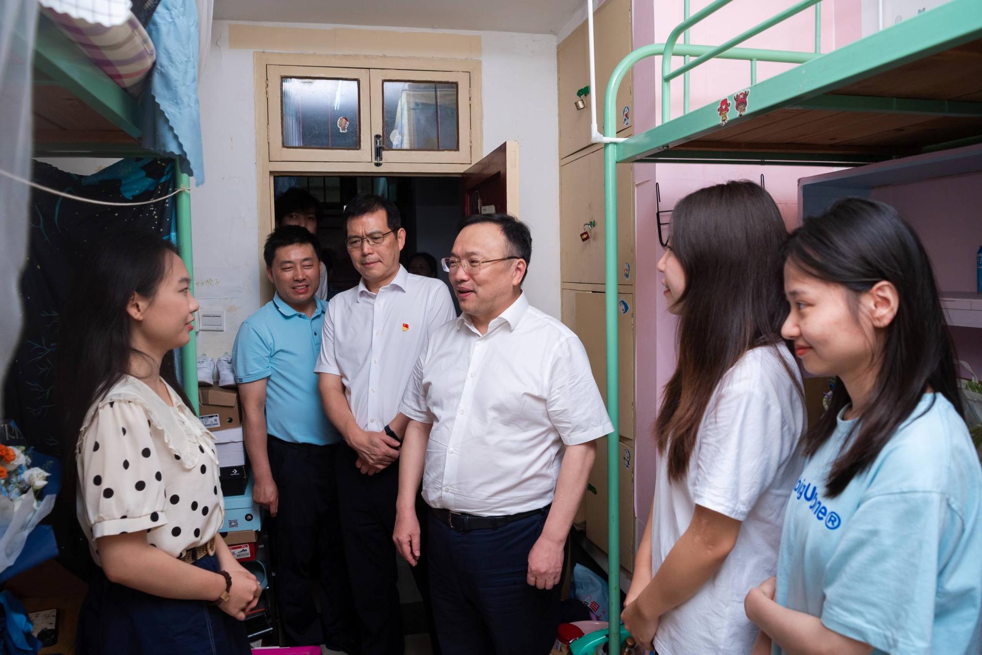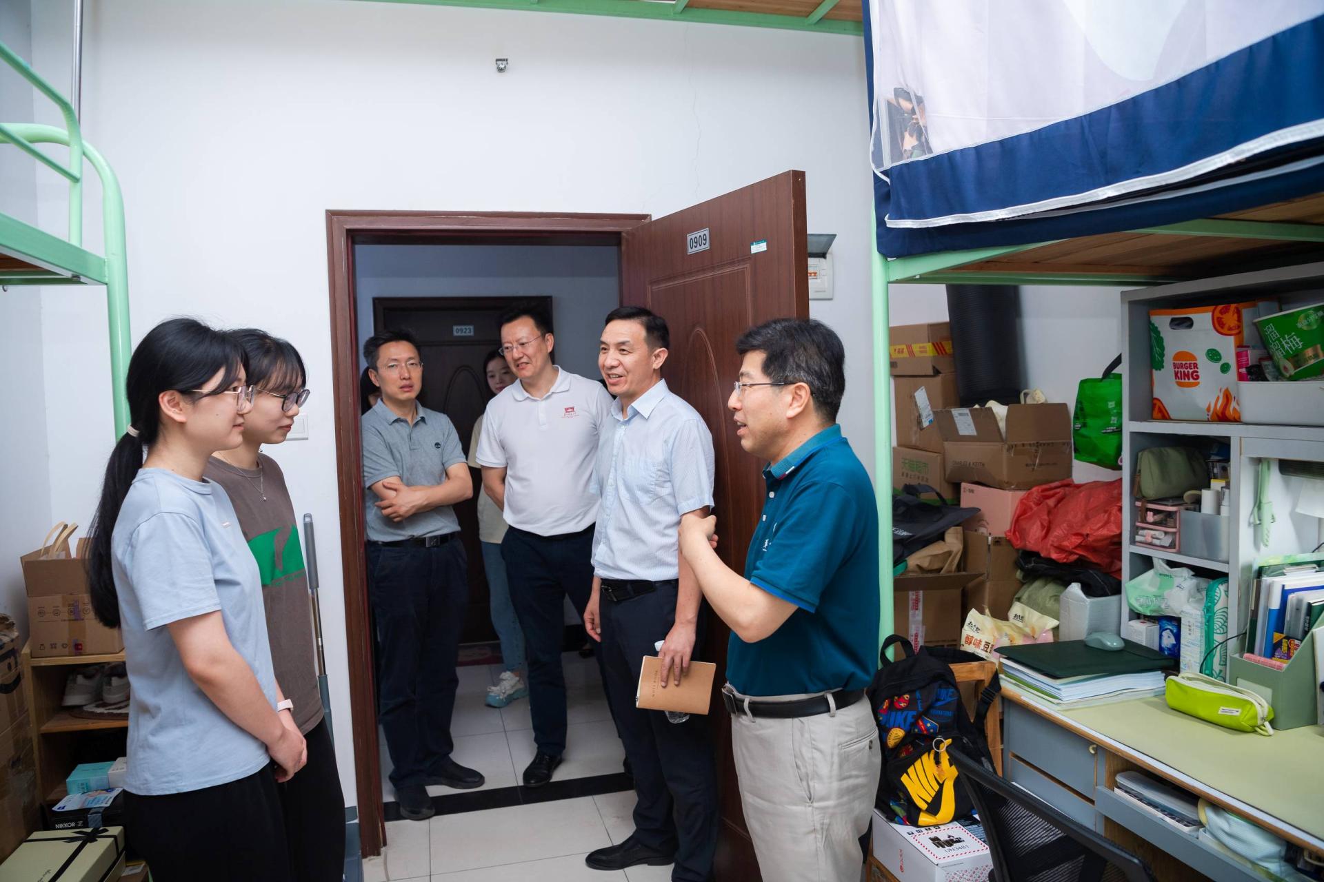 华大在线讯(记者 华轩 实习记者 李辉煌 崔博然)近日,校党委书记夏立新、校长彭双阶、校党委副书记陈迪明先后走访毕业生寝室,了解毕业生离校情况,为即将离校的毕业生送上美好祝福。学校办公室、党委宣传部、党委学生工作部、后勤保障部、保卫处主要负责人参加。