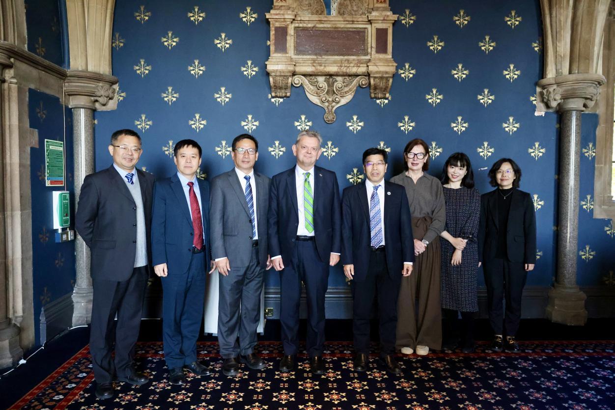 在格拉斯哥大学,彭双阶与校长安东尼·马斯凯特里(Anton Muscatelli)爵士、全球事务办公室中南亚合作部部长莫亚·博兰(Moyra Boland)等座谈。彭双阶表示,华中师大与格大合作渊源已久,期待两校进一步深化交流,在创新型人才培养、师生交流、科研合作、共建联合研究中心等方面开展务实合作。马斯凯特里指出,两校在教育、音乐等多个学科领域的合作已经取得了一些成果,期待进一步在生命科学、人工智能教育等领域开发新的合作项目。访问期间,彭双阶还看望了环球在线官网在格拉斯哥大学的交流学生,并与该校教育学院、亚当·斯密商学院,以及先进研究中心相关负责人举行了座谈。