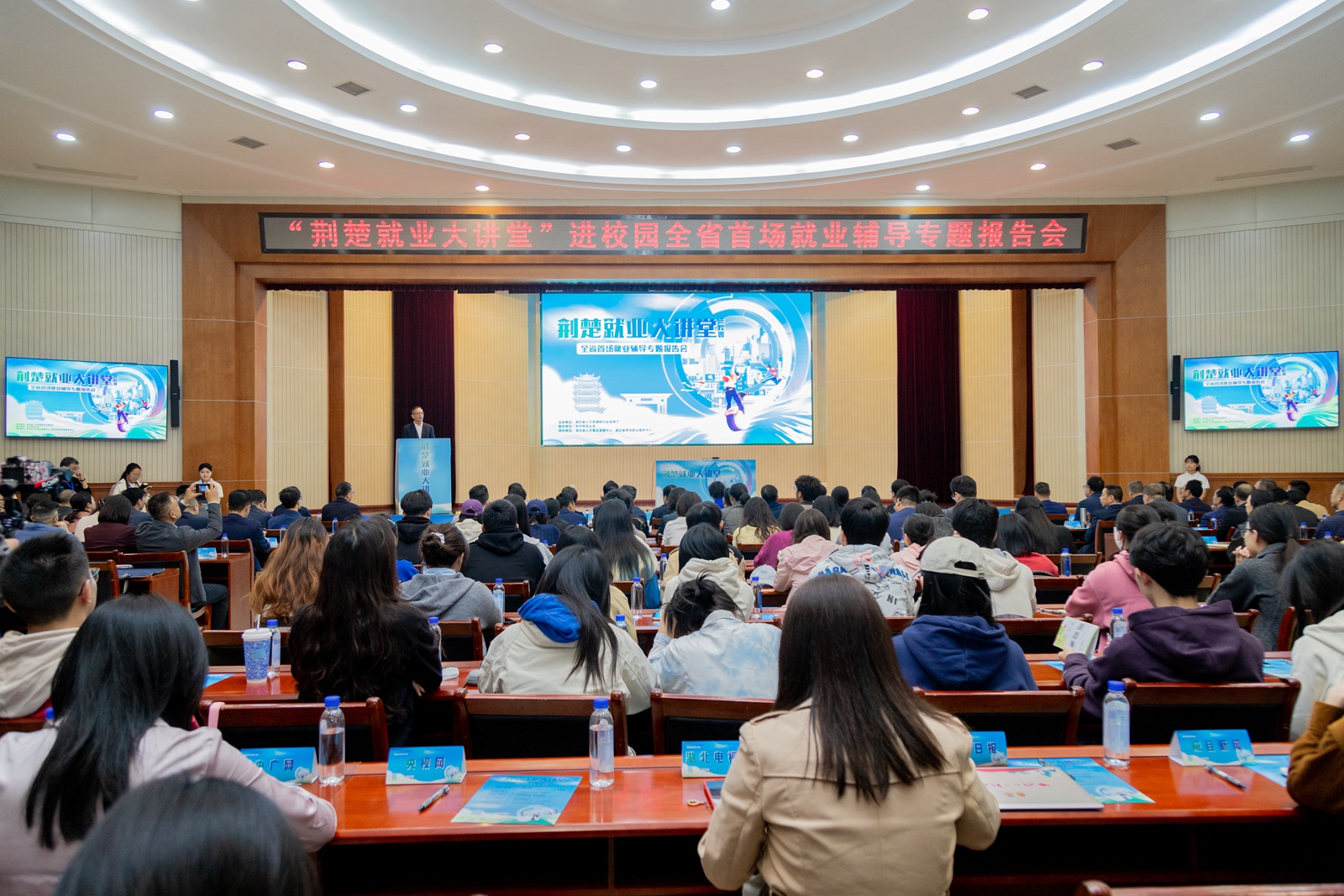 荆楚大讲堂由湖北省人力资源和社会保障厅主办,环球在线官网联办,湖北省人才事业发展中心和湖北省劳动就业服务中心承办,是湖北省人力资源与社会保障厅全面启动基层就业进校园的首场活动。