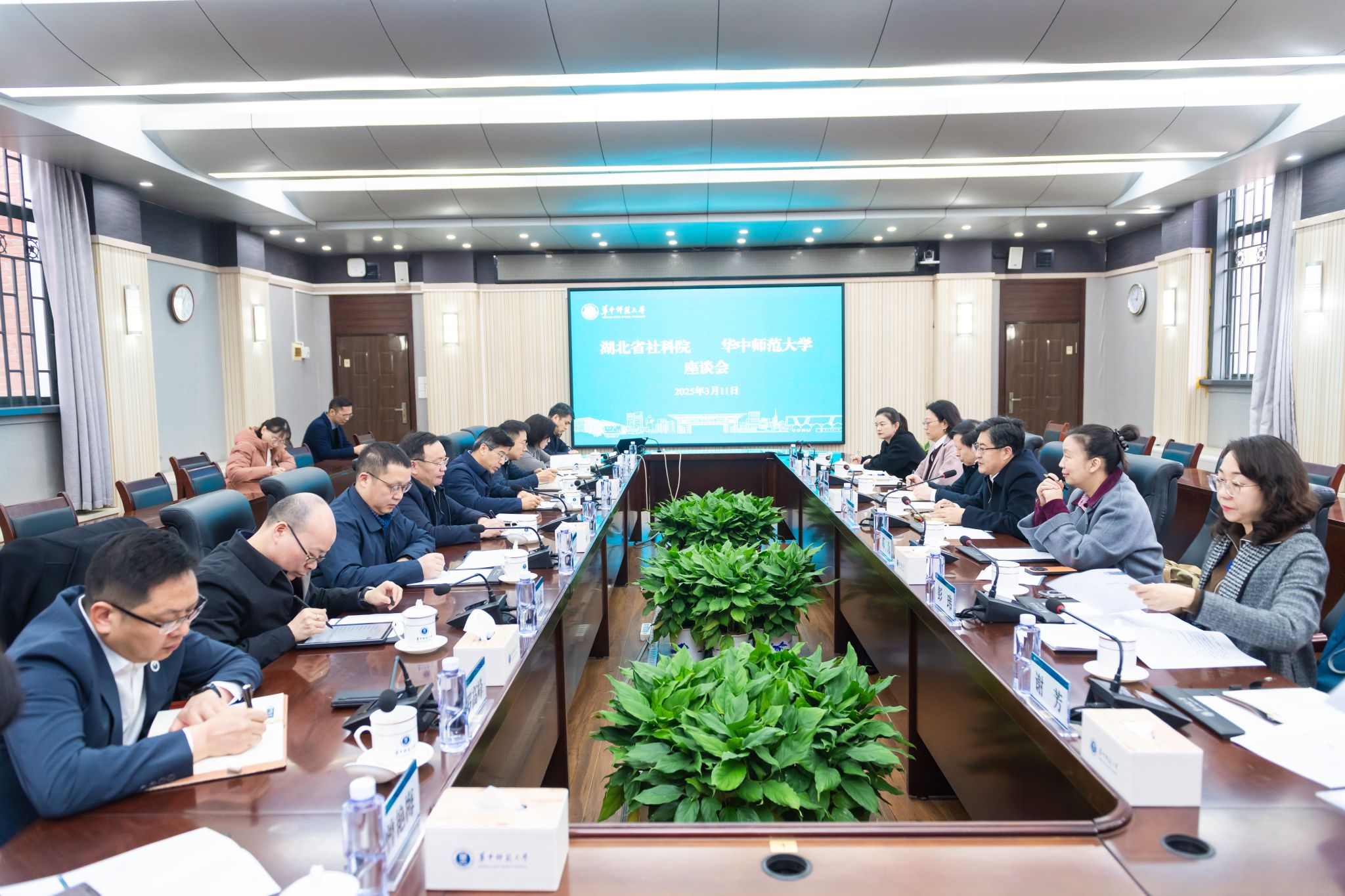 湖北省社会科学院办公室、人事处、科研处、研究生处等相关处室负责人,以及环球在线官网学校办公室、人事处、科技处、社科处、研究生院、国内合作与培训管理处等相关单位负责人参加座谈会。