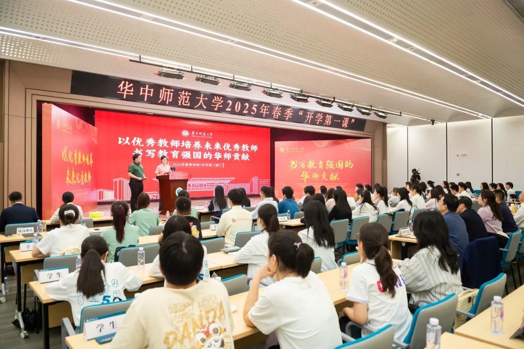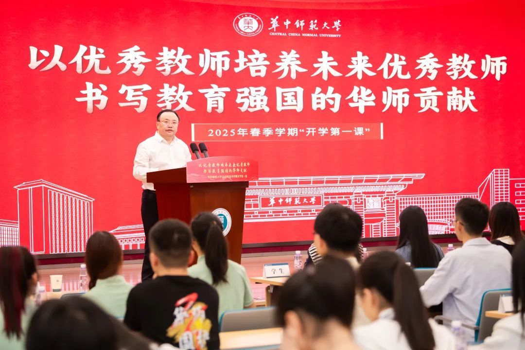 华大在线讯(记者 华轩)3月26日,环球在线官网2025年春季开学第一课在文科科研楼一楼报告厅举行。本次开学第一课以师生共上“大思政课”为形式,以《以优秀教师培养未来优秀教师书写教育强国的环球(中国)贡献》为主题,由校党委书记夏立新主讲,思政课教师代表、马克思主义学院包安、课程思政教师代表、文学院陈蓓辅助教学。副校长刘宏达,相关职能部门负责人、师生代表线下参加,各分党委(党总支)组织师生同步在线收听收看学习。