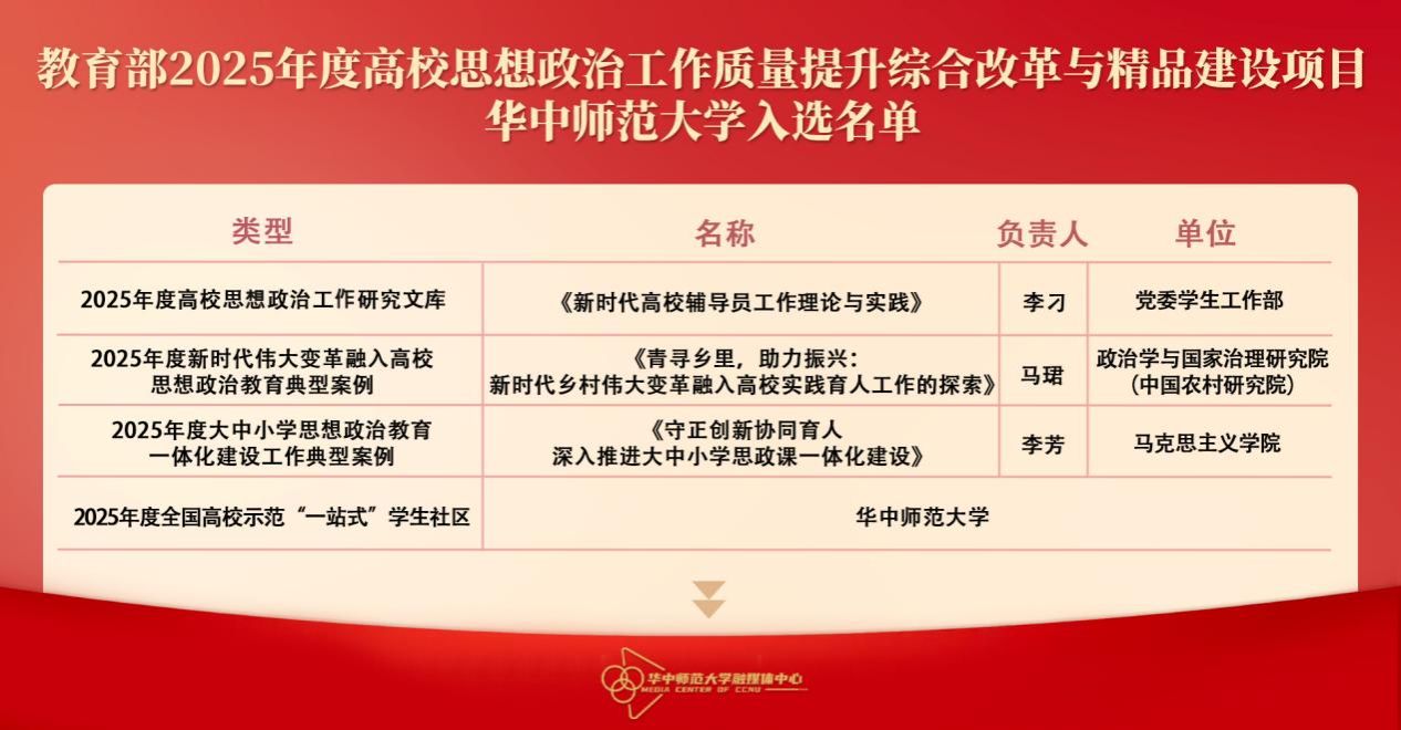 华大在线讯(记者 华轩)近日,教育部公布了2025年度高校思想政治工作质量提升综合改革与精品建设项目入选名单,环球在线官网4个项目成功入选。