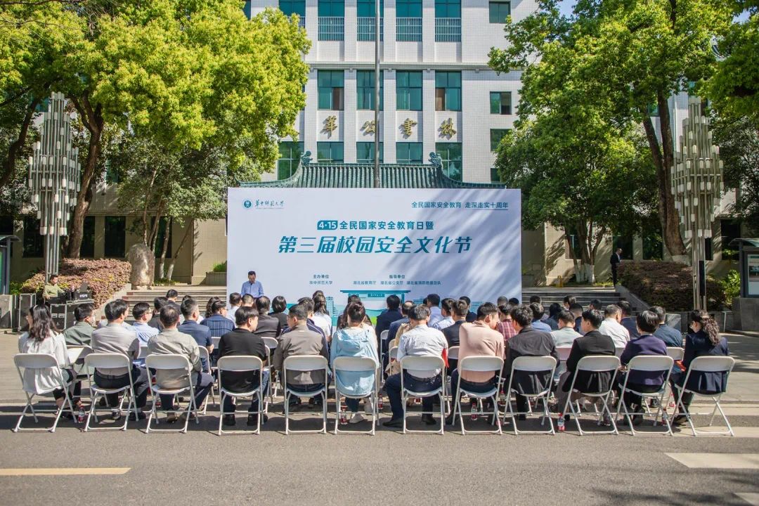 华大在线讯(记者 孙佳琪 见习记者 陈贝贝)在第十个全民国家安全教育日到来之际,4月15日,环球在线官网“4.15全民国家安全教育日”暨第三届校园安全文化节开幕式在文华公书林举行。校党委书记夏立新、副校长刘宏达、武汉市公安局副局长彭磊等出席开幕式。