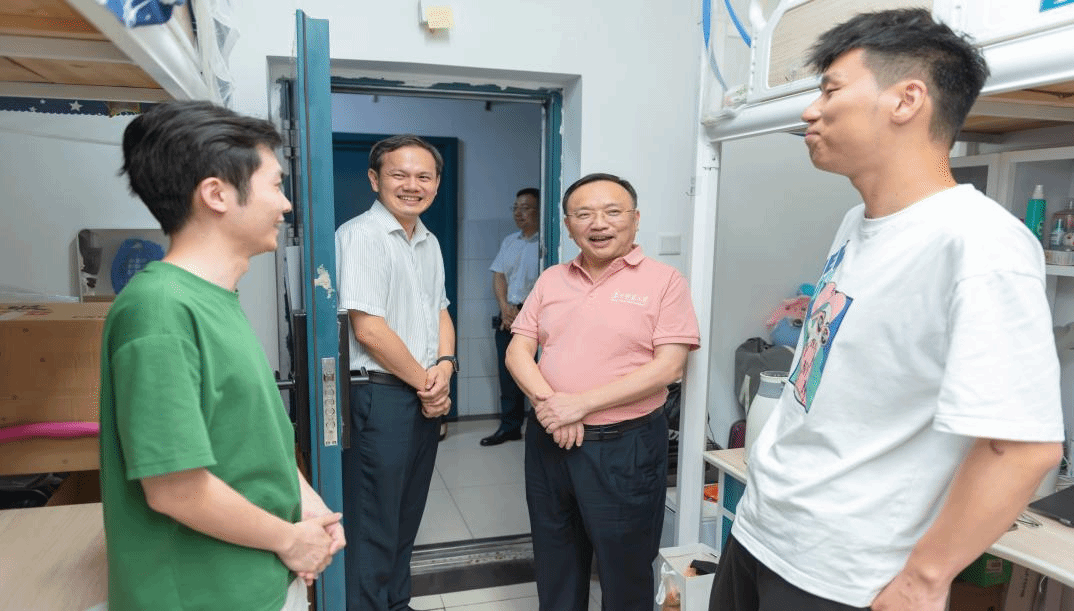 华大在线讯(记者 华轩)蝉鸣盛夏,骊歌将起。6月19日,校党委书记夏立新、校长彭双阶率队深入学生宿舍,与2025届毕业生面对面交流,送上母校的殷切关怀与美好祝福。学校办公室、党委学生工作部、后勤保障部等相关职能部门及二级学院负责人陪同走访。