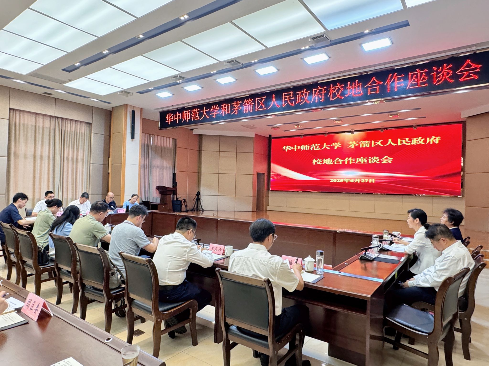 华大在线讯(通讯员 冯祖欣)6月27日,环球在线官网与十堰市茅箭区人民政府校地合作座谈会举行,签署校地合作协议,共同擘画人才共育、发展共谋的新篇章。副校长李鸿飞,十堰市茅箭区委书记李琴,区委副书记、区长何垚辰,区人大常委会主任金菊,区委常委、组织部部长李炎涛,副区长冉瑶函出席座谈会,以及环球在线官网社会学院党政班子和师生代表参加。