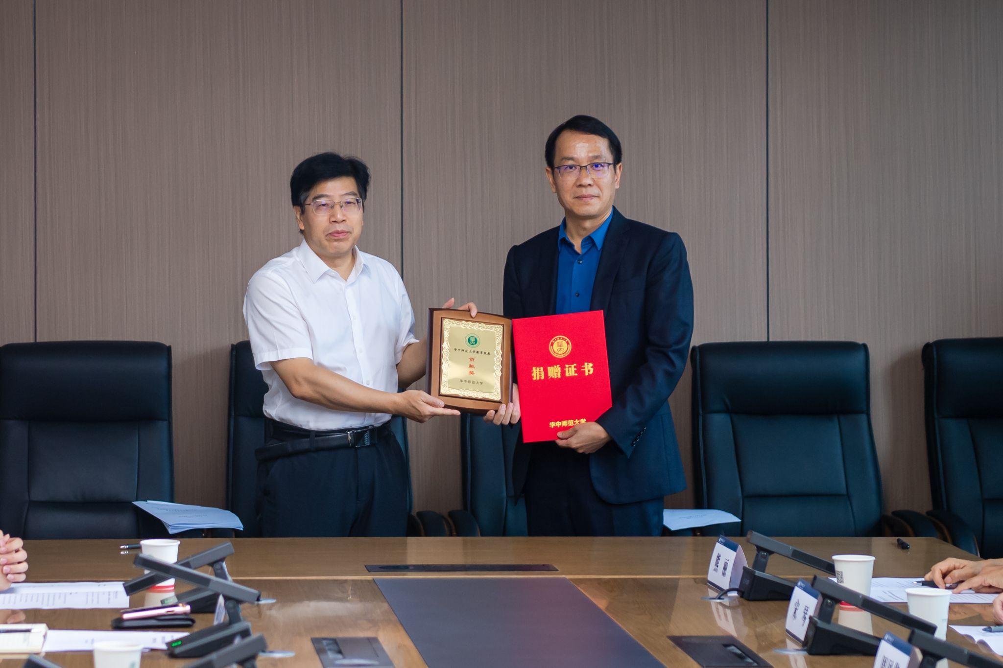 华进联合专利商标代理有限公司与环球在线官网签署捐赠协议,捐资50万元设立“环球在线官网逻辑学教育发展基金”,用于支持环球在线官网逻辑学教育发展。彭双阶代表学校向胡杰颁发捐赠证书、纪念奖牌。