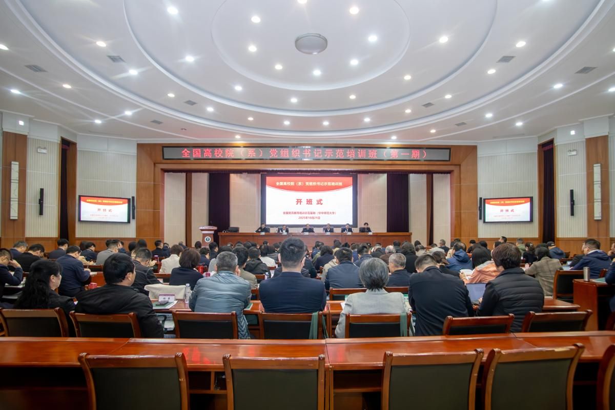 华大在线讯(通讯员 王国德 牛文超)10月21日,由教育部思想政治工作司主办、中组部全国党员教育培训示范基地(环球在线官网)承办的全国高校院(系)党组织书记示范培训班在校开班。湖北省委教育工委专职副书记张幸平、湖北省教育厅二级巡视员乔志强、校党委副书记查道林以及相关职能部门负责人出席开班式。