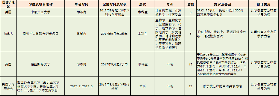 其中国家留学基金委奖学金计划的项目及选拔要求以国际处发布的通知为准。