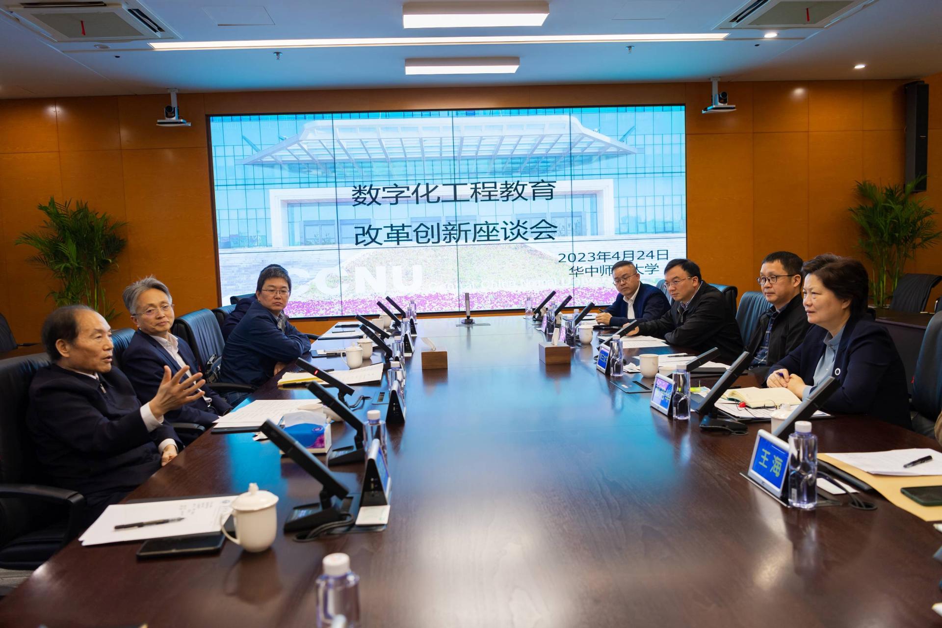 华大在线讯(记者 郝日虹)4月24日,数字化工程教育改革创新座谈会在南湖综合楼1182会议室举行。中国工程院院士王复明、校长郝芳华、江汉大学副校长贾永胜、武汉理工大学交通学院胡志坚教授等出席座谈会,围绕“数字化工程教育改革创新”进行探讨交流。